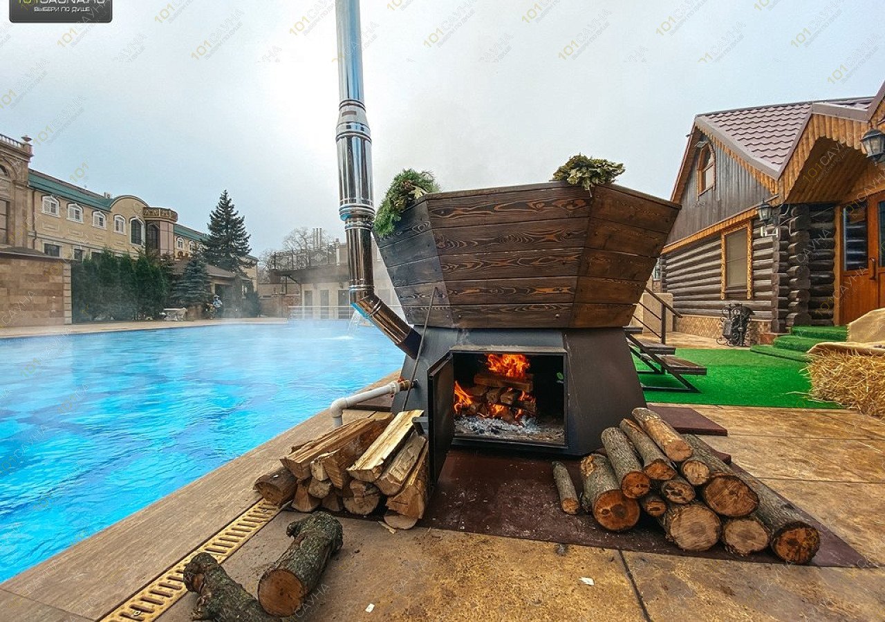 банный чан на огне с температурой воды +40-42 градуса