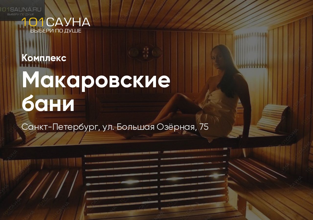 «Макаровские бани» расположены в живописной лесной зоне отдыха на берегу Суздальских озёр в Выборгском районе Санкт-Петербурга. Закрытая территория с охраняемой парковкой на 8 автомобилей обеспечивает спокойный и комфортный отдых.