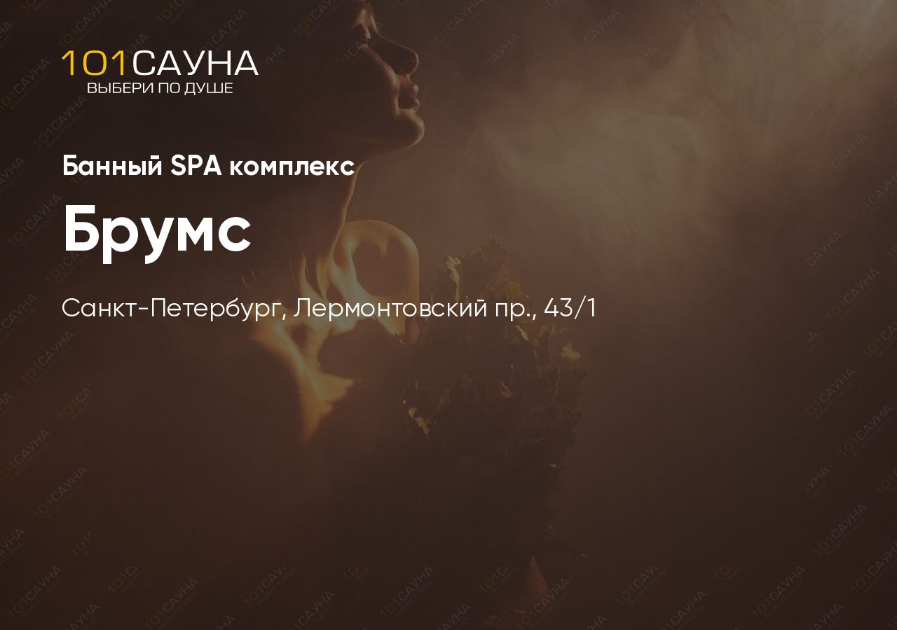 Банный СПА-комплекс Брумс — авторское пространство для ценителей банного искусства в самом центре Петербурга, на Лермонтовском проспекте. Комплекс сочетает традиции русского парения с современными СПА-процедурами.