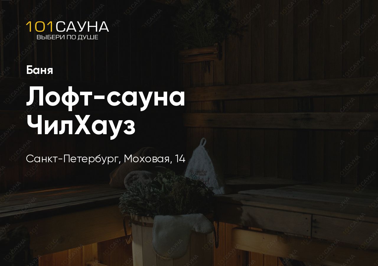 Лофт-сауна ЧилХауз расположена на Моховой улице, 14, в Центральном районе Санкт-Петербурга, недалеко от метро Чернышевская. Это стильное лофт-пространство с авторской атмосферой, рассчитанное на компанию до 15 человек. Работает круглосуточно.