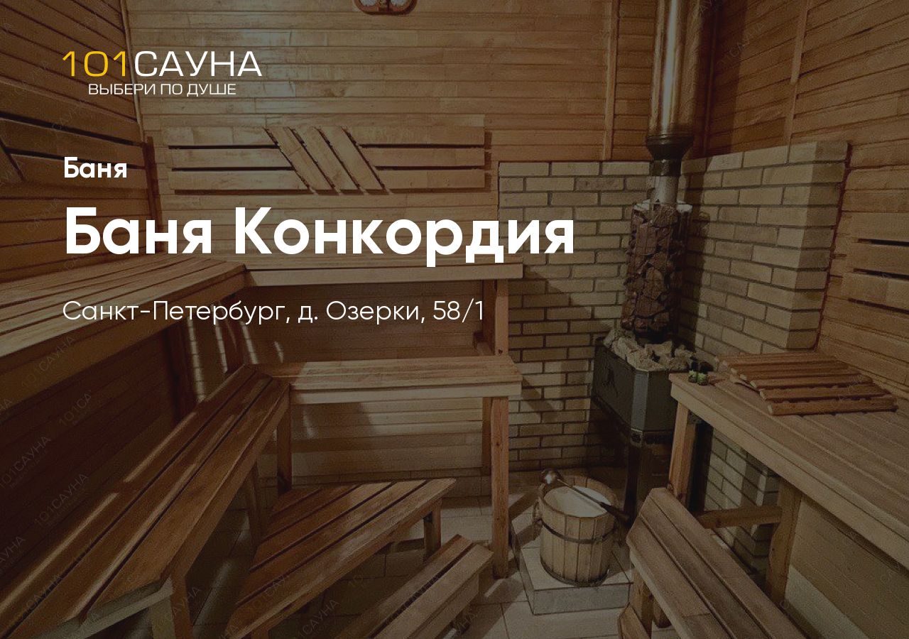 Баня Конкордия — уютная баня на дровах в деревне Озерки Всеволожского района Ленинградской области. Идеальное место для отдыха в кругу друзей или семьи в 30 км от Санкт-Петербурга.