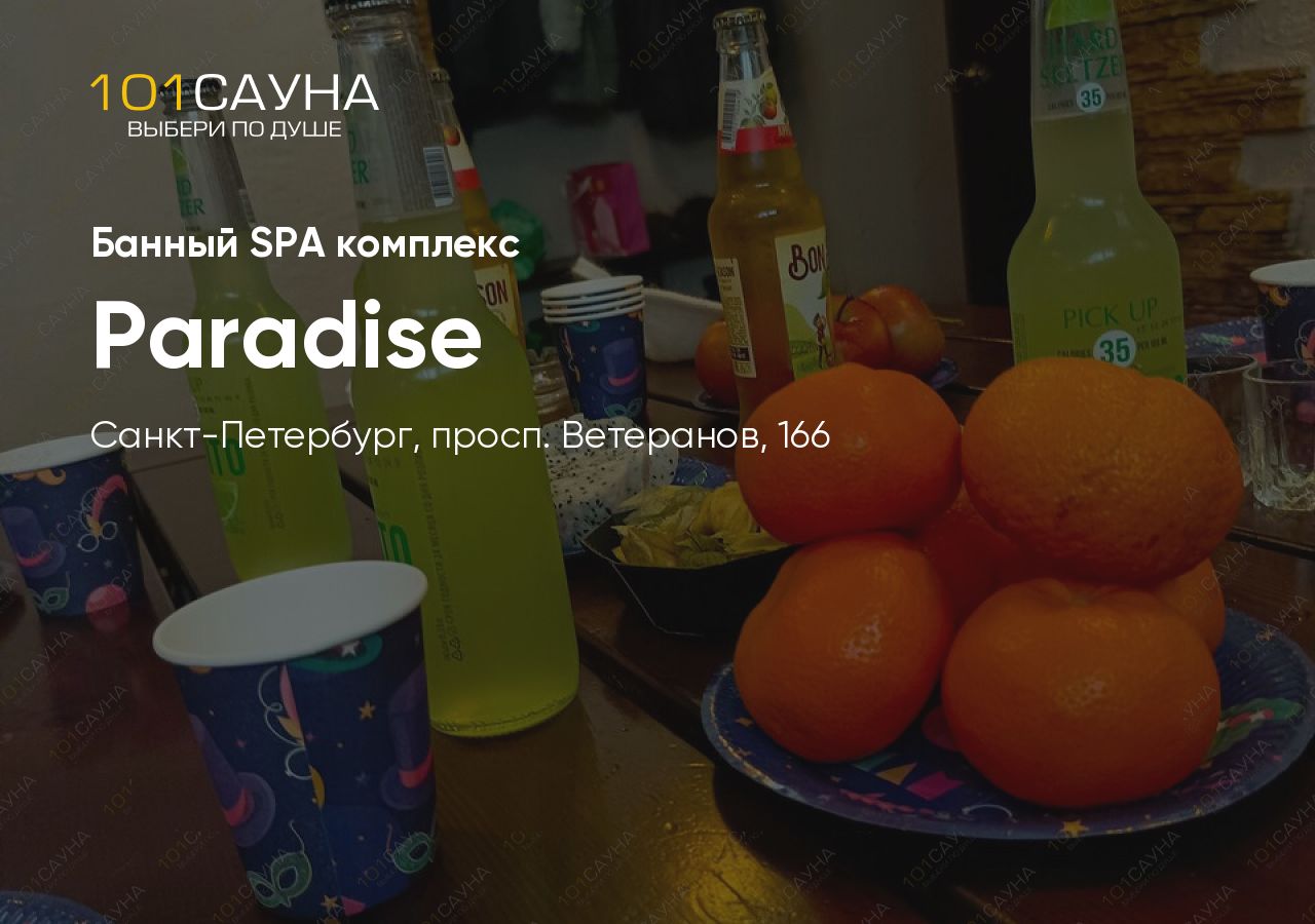 Paradise — современный банный SPA комплекс на проспекте Ветеранов, 166, предлагающий полное погружение в атмосферу отдыха и оздоровления.