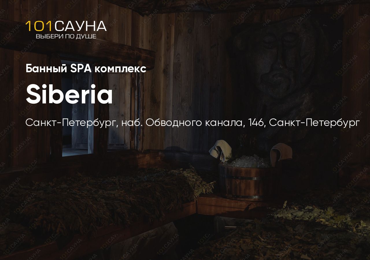Siberia — премиальный банный SPA-комплекс в центре Санкт-Петербурга на набережной Обводного канала, 146 (м. Нарвская). Несколько уникальных залов с русской дровяной парной: Аил, Саман, Мовня, Монастырская, Берлога и другие — каждый с подогреваемой купелью и зоной отдыха.