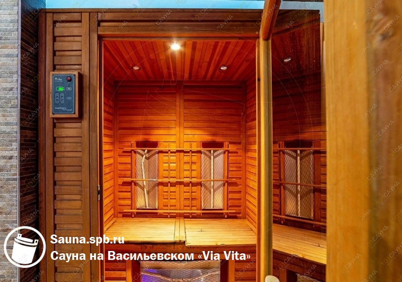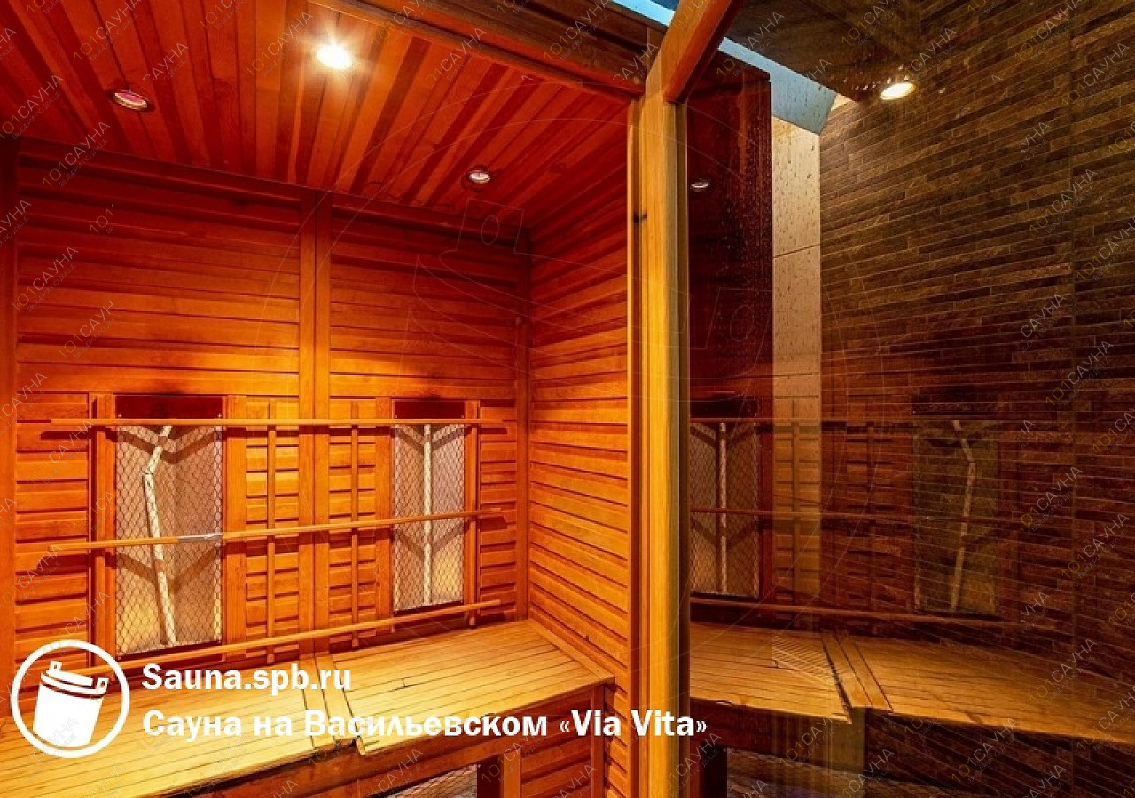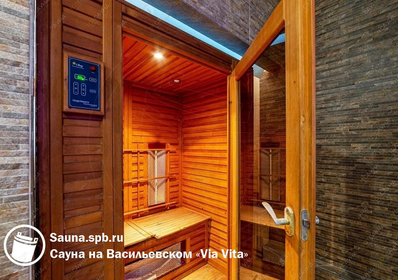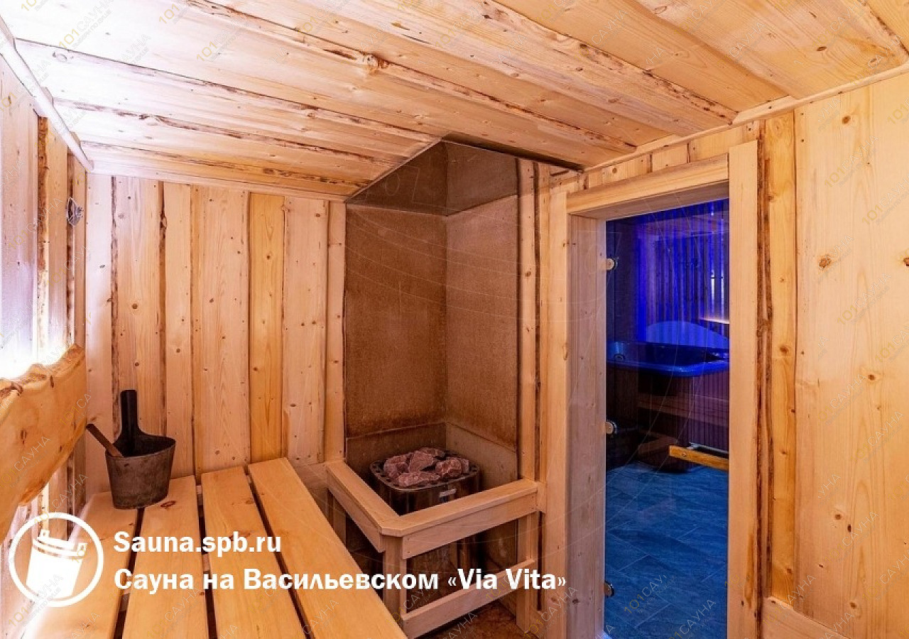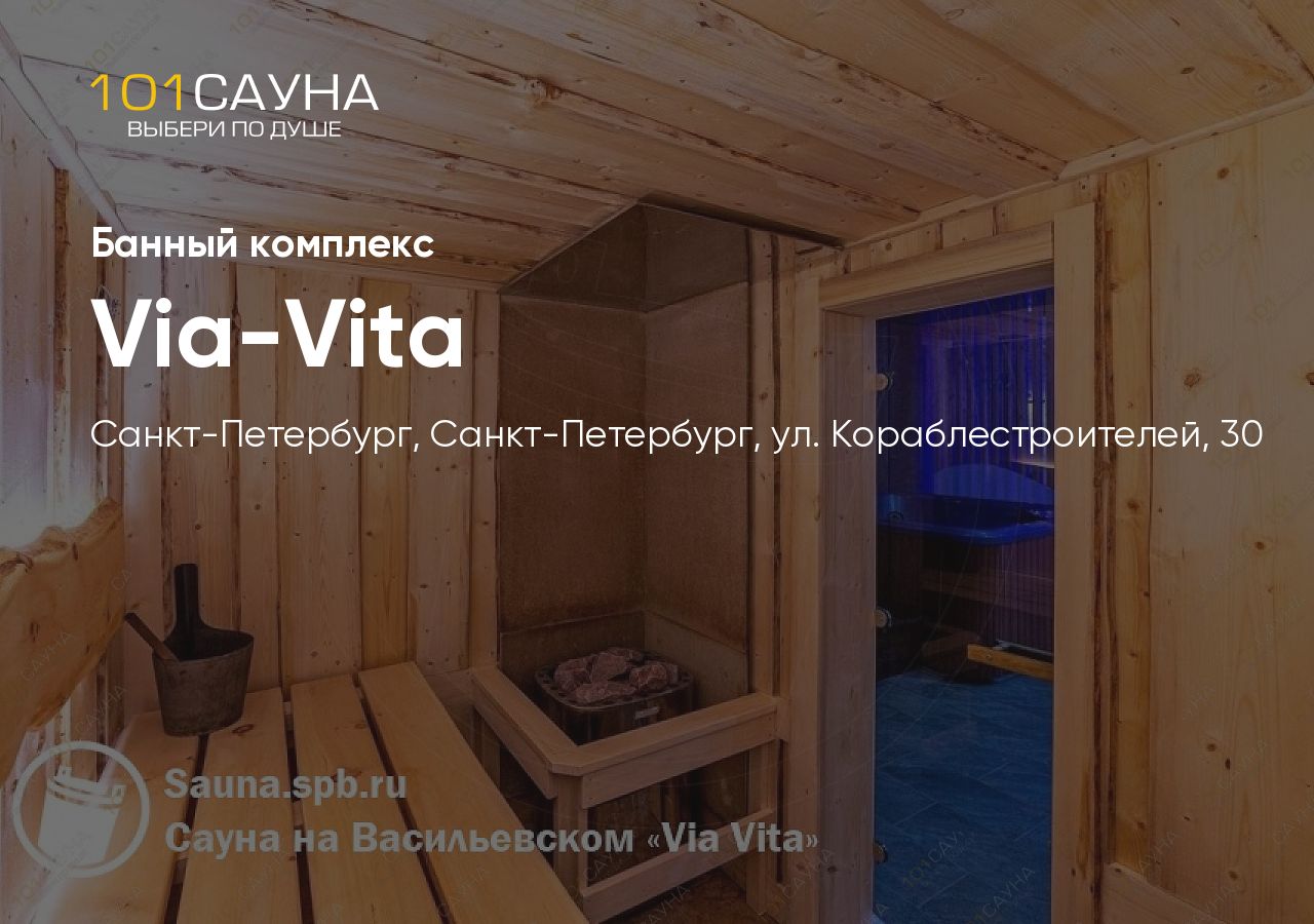 Банный комплекс Via-Vita расположен в Василеостровском районе Санкт-Петербурга на улице Кораблестроителей, 30 — в шаговой доступности от Невской губы, рядом с отелем «Park Inn Прибалтийская». Комплекс работает круглосуточно и предлагает два зала для компаний разного размера.