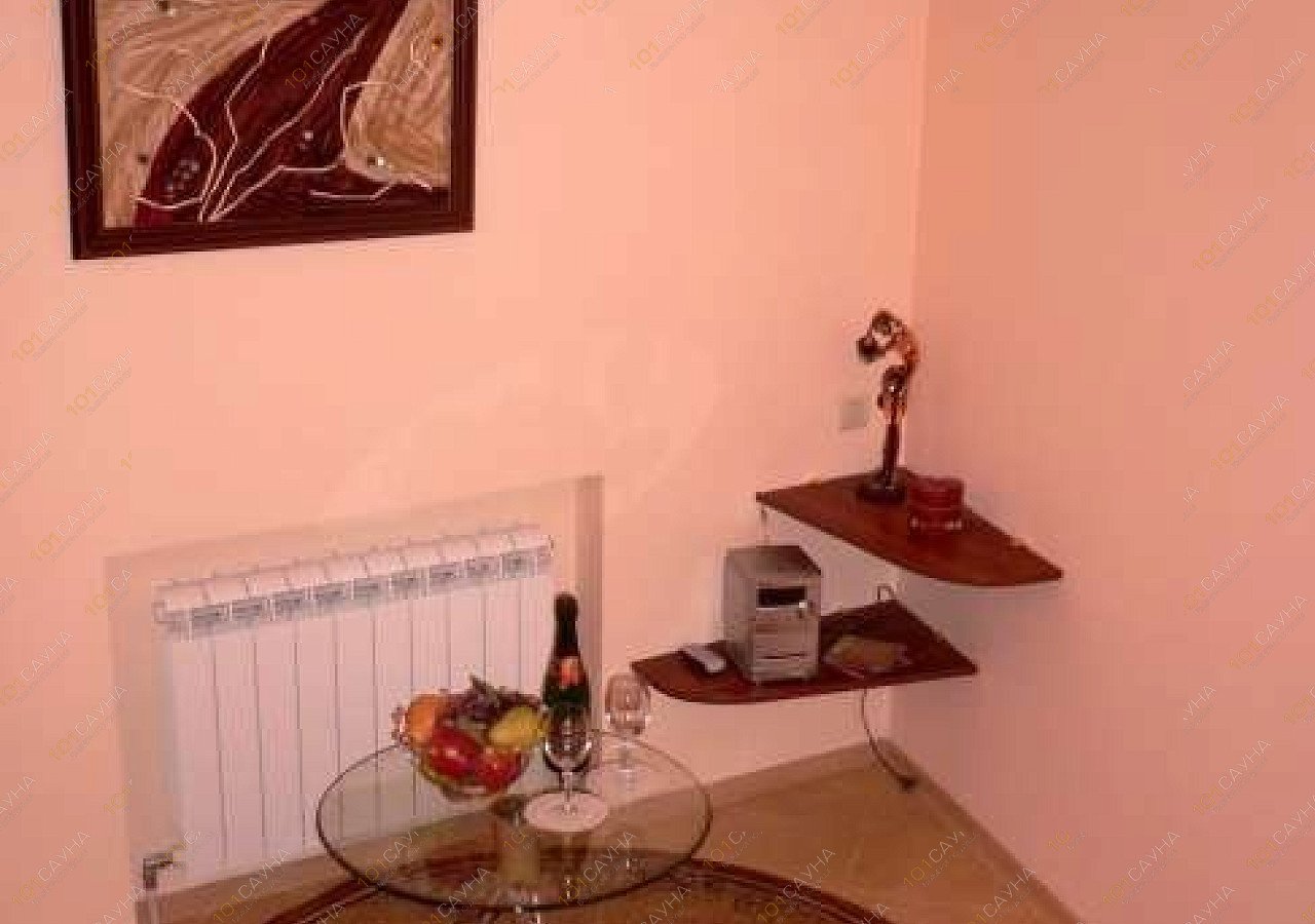 Прекрасный бассейн 3*5 м с гидромассажной установкой. Температура воды 28 °С, серьёзная фильтрация воды, ионизация (вода насыщается кислородом), удобный поступенчатый спуск в воду. Плитка на полу не скользкая, с подогревом. Вашим ножкам будет комфортно. Рядом с бассейном расположен стол, на полочках чай, чайник, посуда для чая. Также в комнате есть холодильник и музыкальный центр. Чуть дальше расположена парилка на газу, на камни можно поддавать воду. Разрешаются веники. Комната отдыха выполнена в восточном стиле. Большой диван из кожзаменителя, под потолком симпатичный балдахин. На улице есть беседка и мангальная зона.