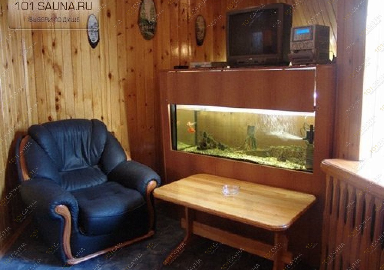 Во второй бане также находиться бассейн, парная с новой отделкой и натуральной липы, кресло массаж, большая и просторная комната с аквариумом, телевизором и со светомузыкой.