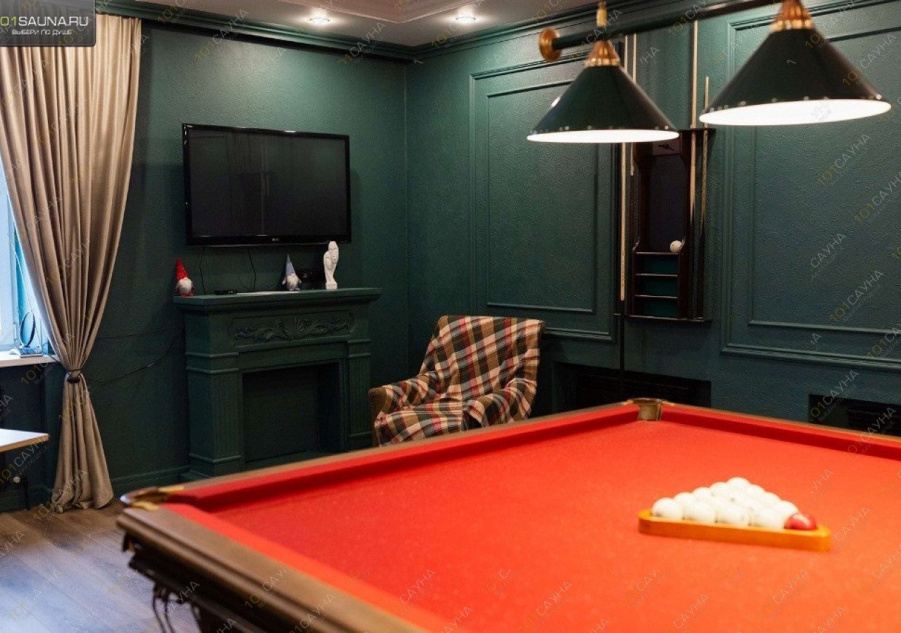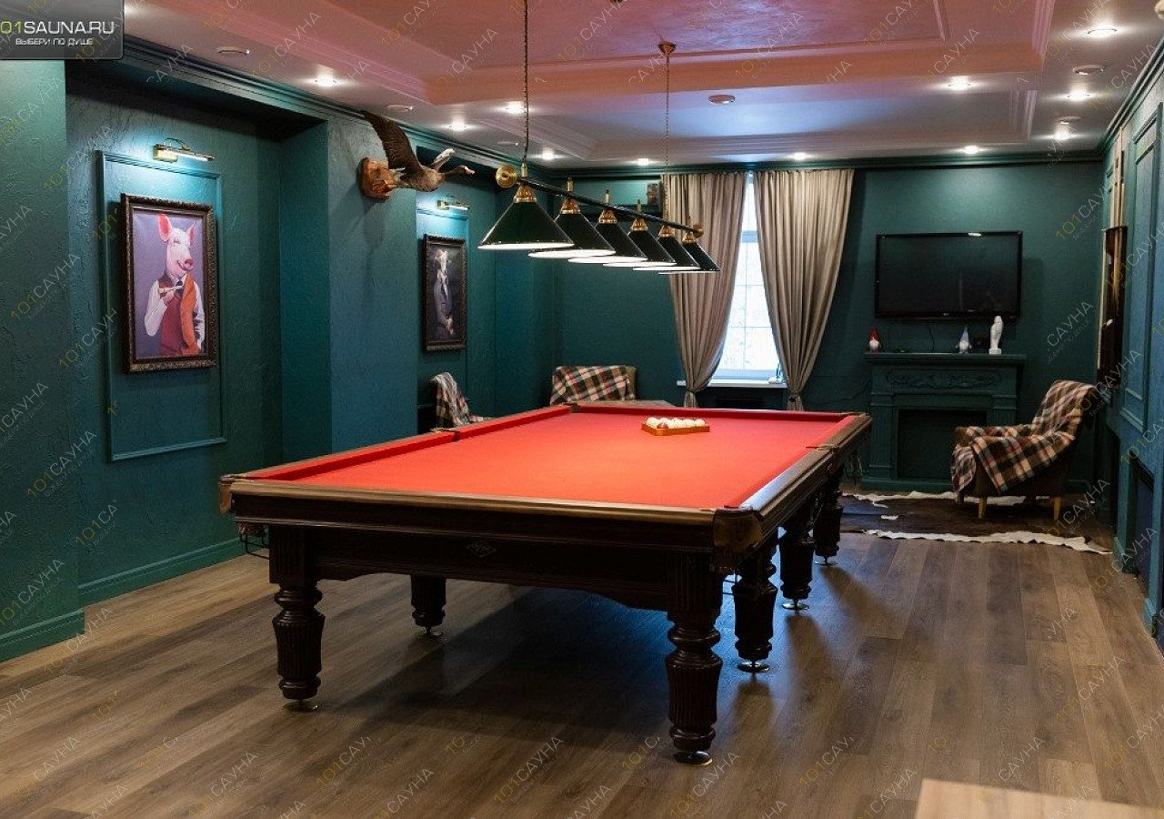 Предлагаем выбор услуг: Русская парная с вениками, бассейн с подогревом, комната отдыха, обливное ведро, ТВ, банные принадлежности, настольные игры, бильярд, доставка блюд..