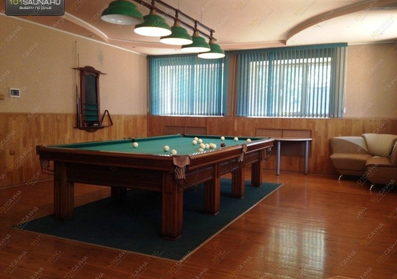 Предлагаем выбор услуг: русский бильярд, зона отдыха, можно париться веником, комната отдыха.
