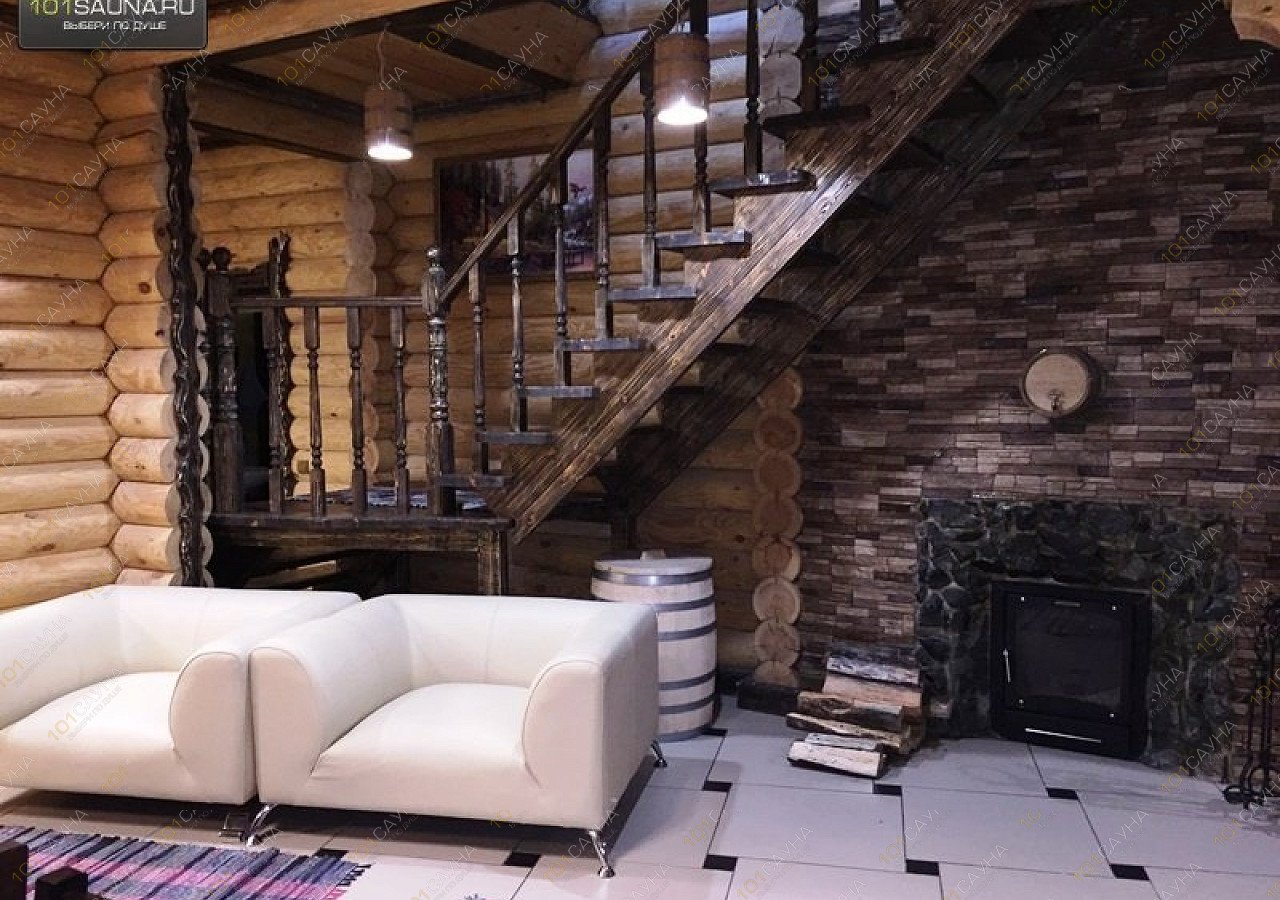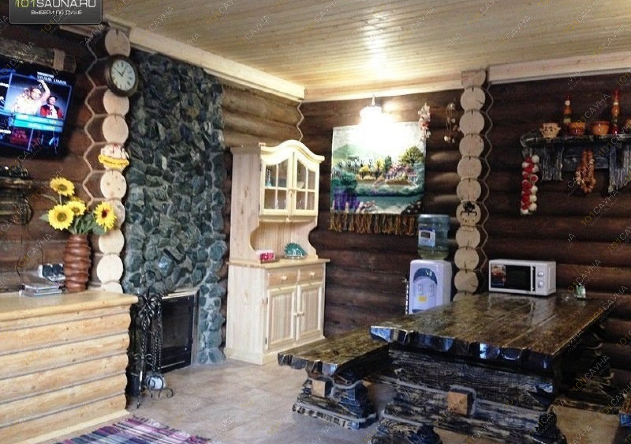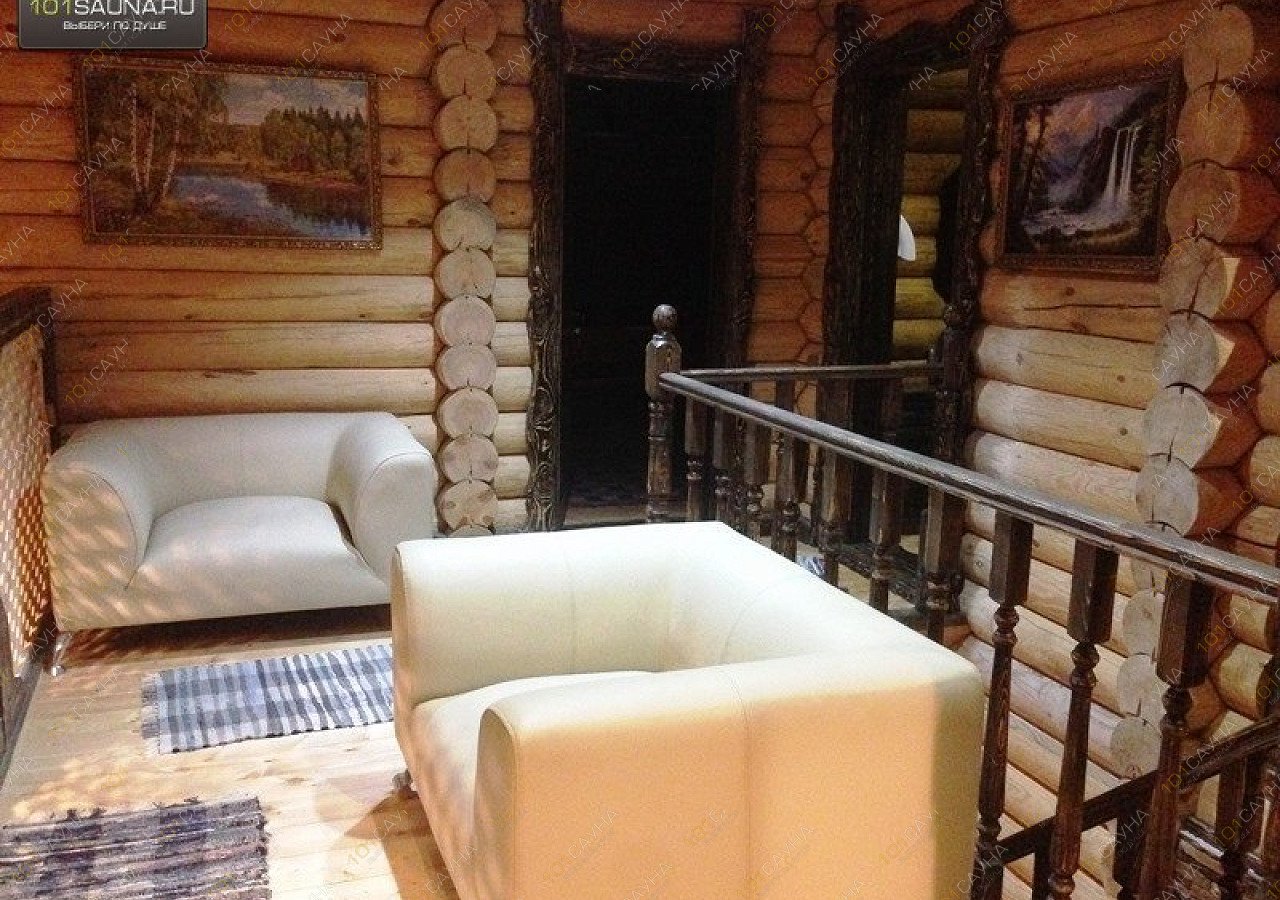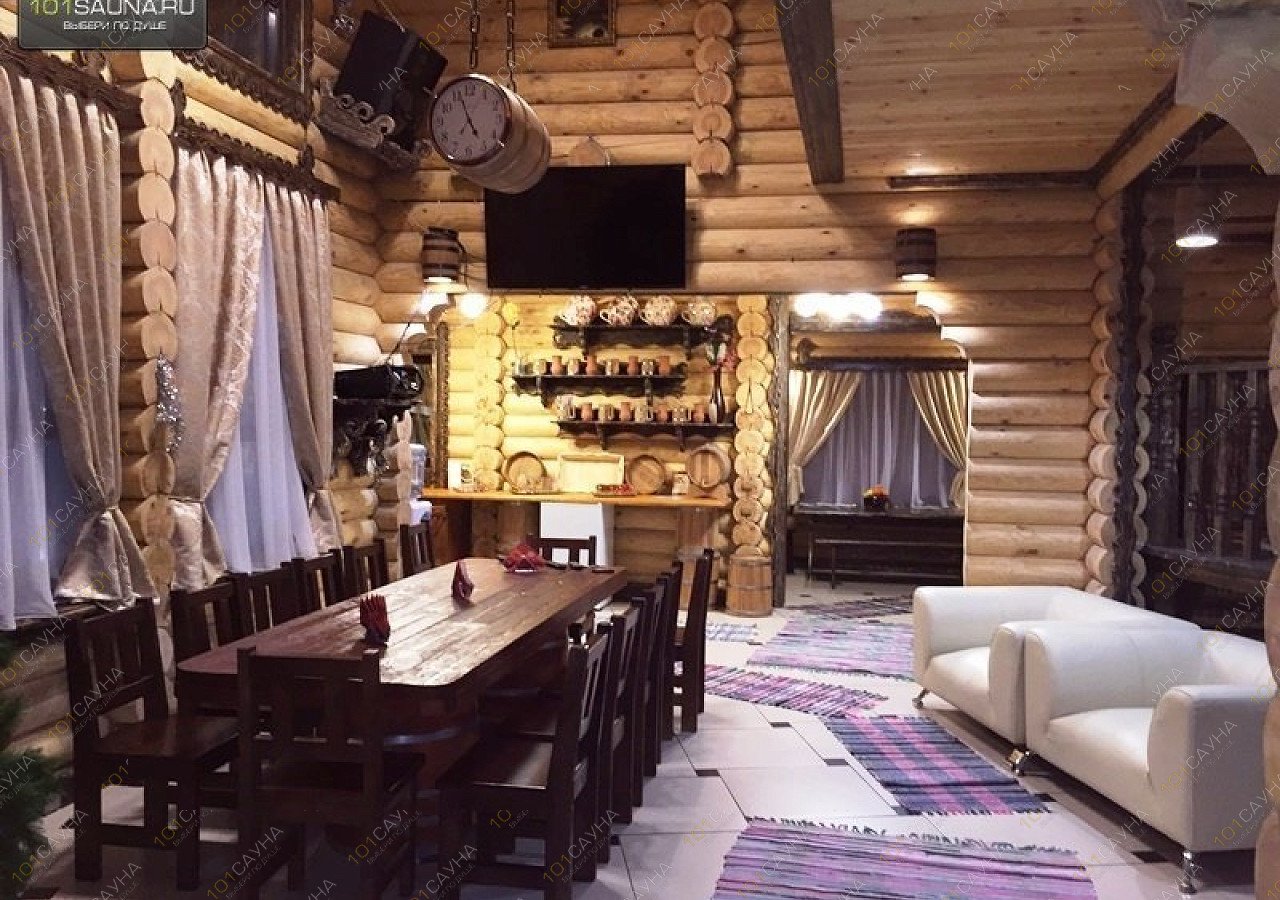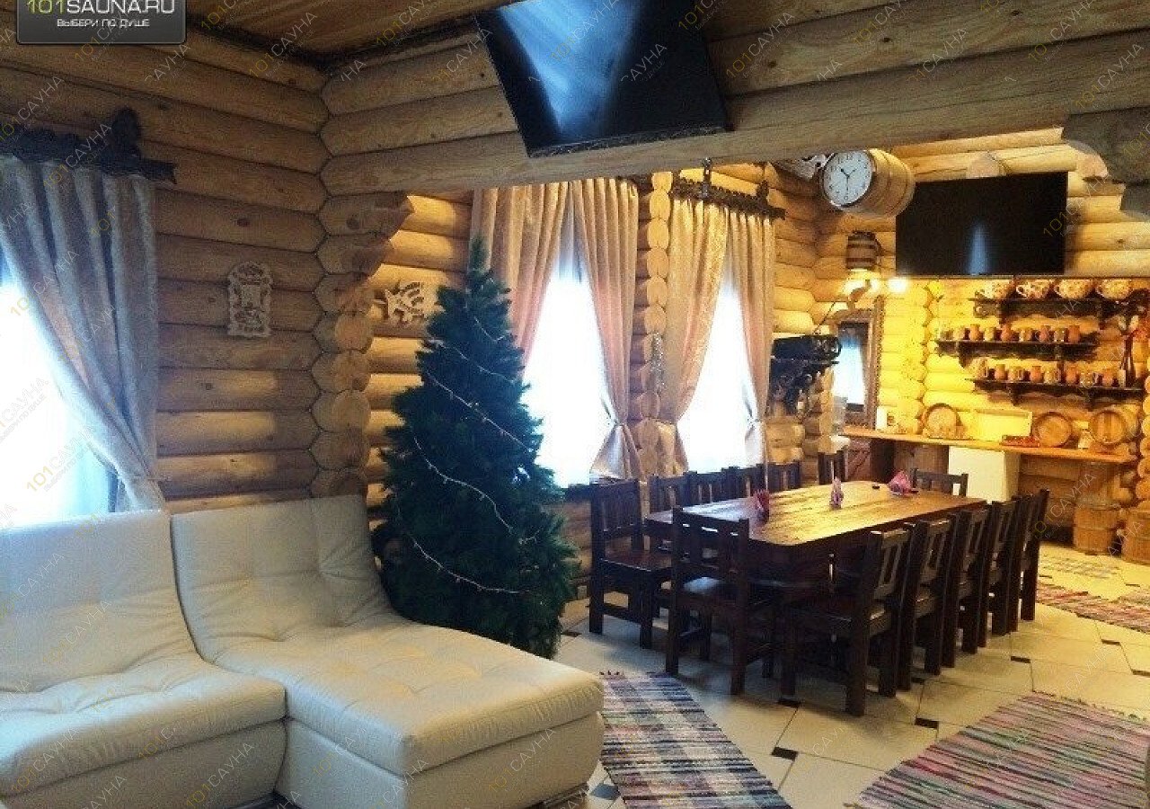В большой бане, просторный зал с камином, зонами отдыха, большой стол на бочках, 12 стульев, зона кухни, теплая веранда. ТВ, музыкальный центр с цветомузыкой, караоке. Большая видовая деревянная лестница на второй этаж, на котором расположены две спальни, просторный коридор с зонами отдыха и балконом с которого виден первый этаж, бильярдная комната, игровой стол, зоны отдыха, ТВ, ДВД, игровая приставка Xbox-360. Два санузла один на первом, другой с душевой кабинкой на втором этаже. Возле бани