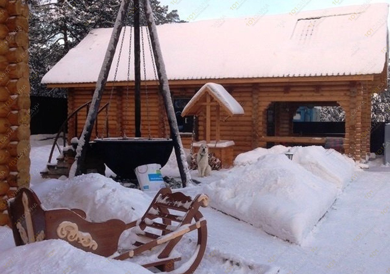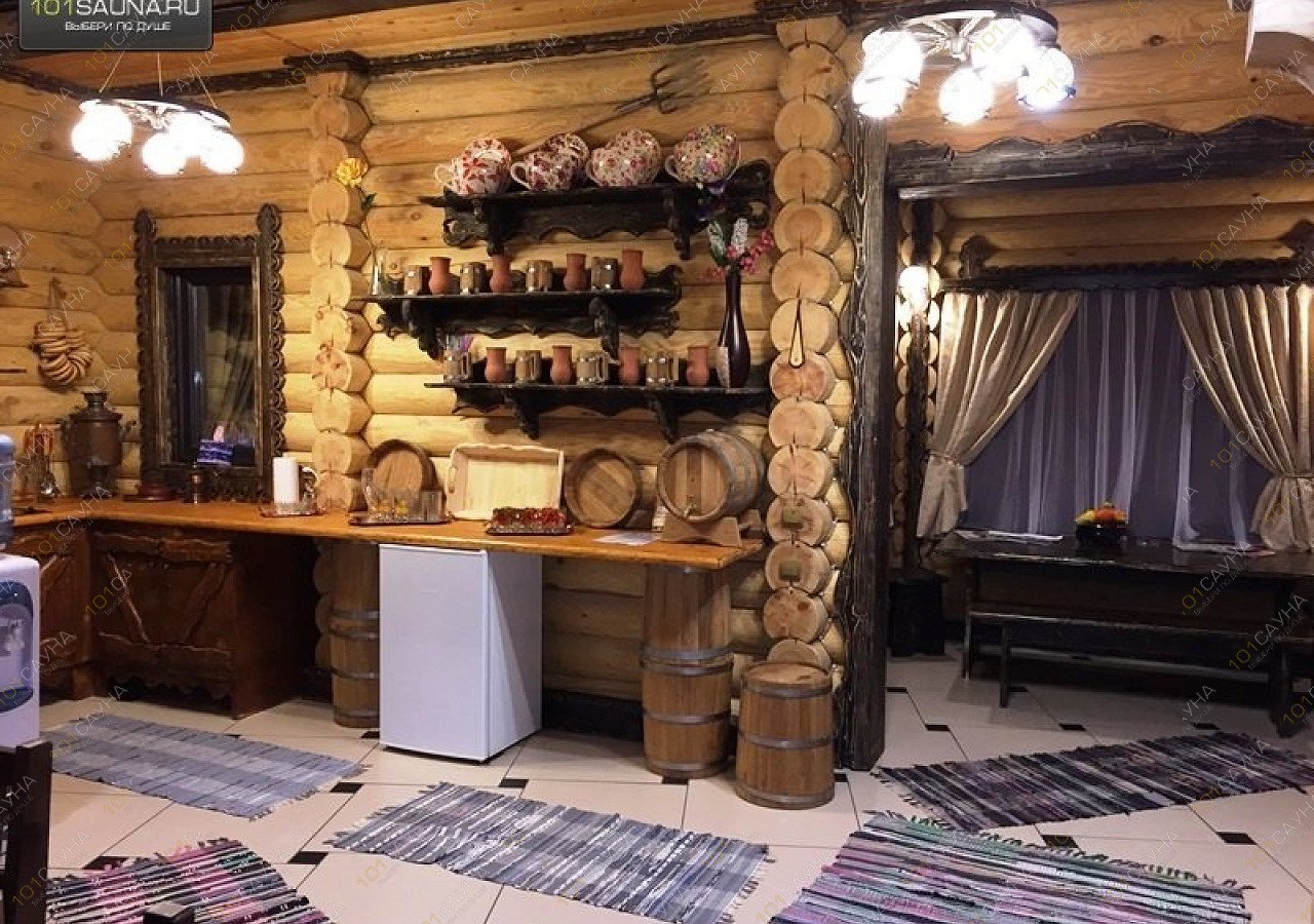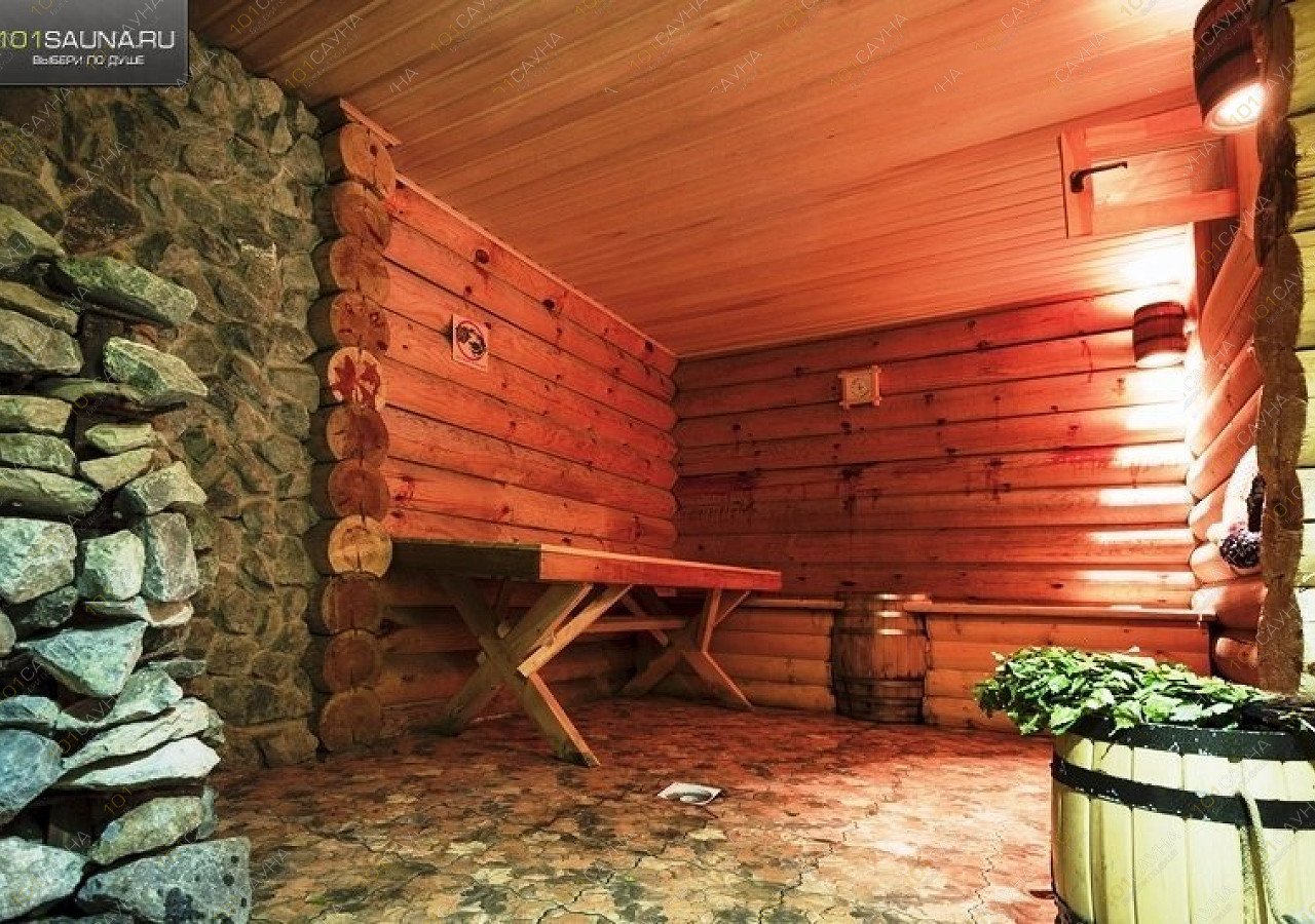Два, отдельно стоящих деревянных дома, большой (до 20 чел.) и, среднего размера (до 12 чел.). Отапливаются на дровах, с подогревом полов, парные с использованием березовых, дубовых веников. В парной большой бани есть дубовая бочка с проточной ледяной водой, наилучший эффект после распаривания, сразу же, не выходя из парной ополоснуть себя из этой бочки. Для, менее стойких - ведро-водопад в душевых обеих бань. Также, для любителей контрастного «душа» в средней баньке есть деревянная купель с ледяной водой