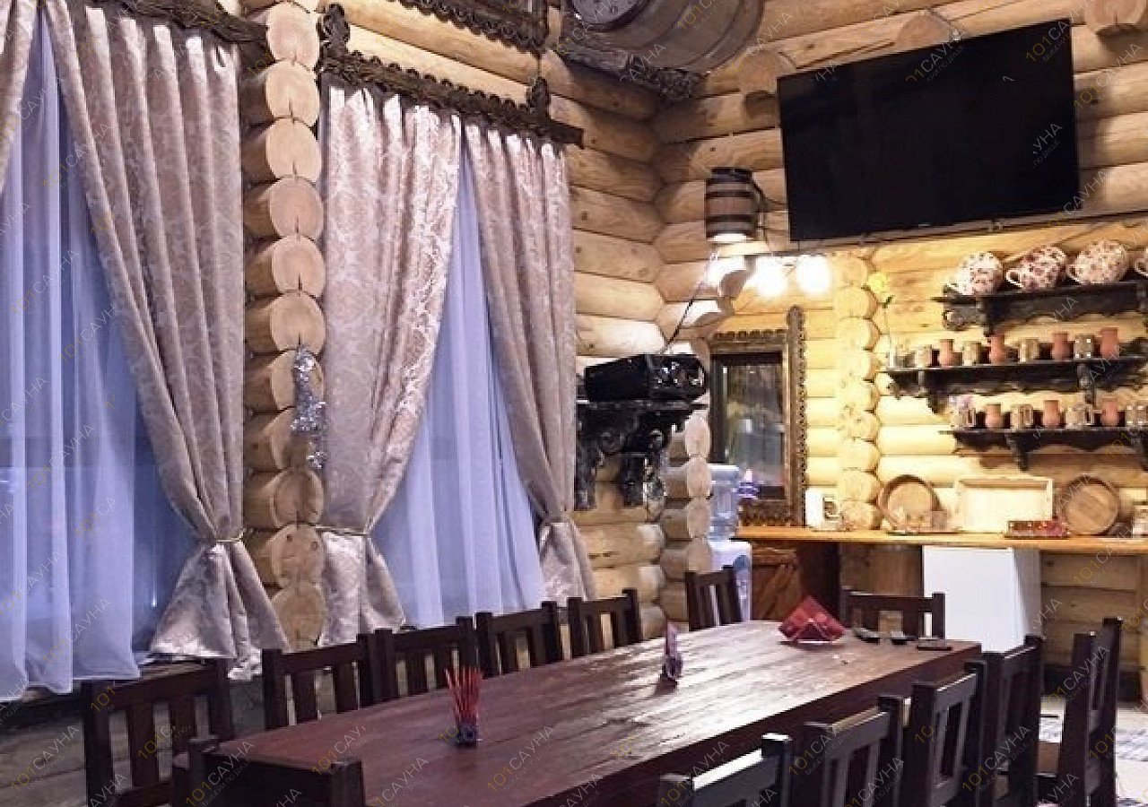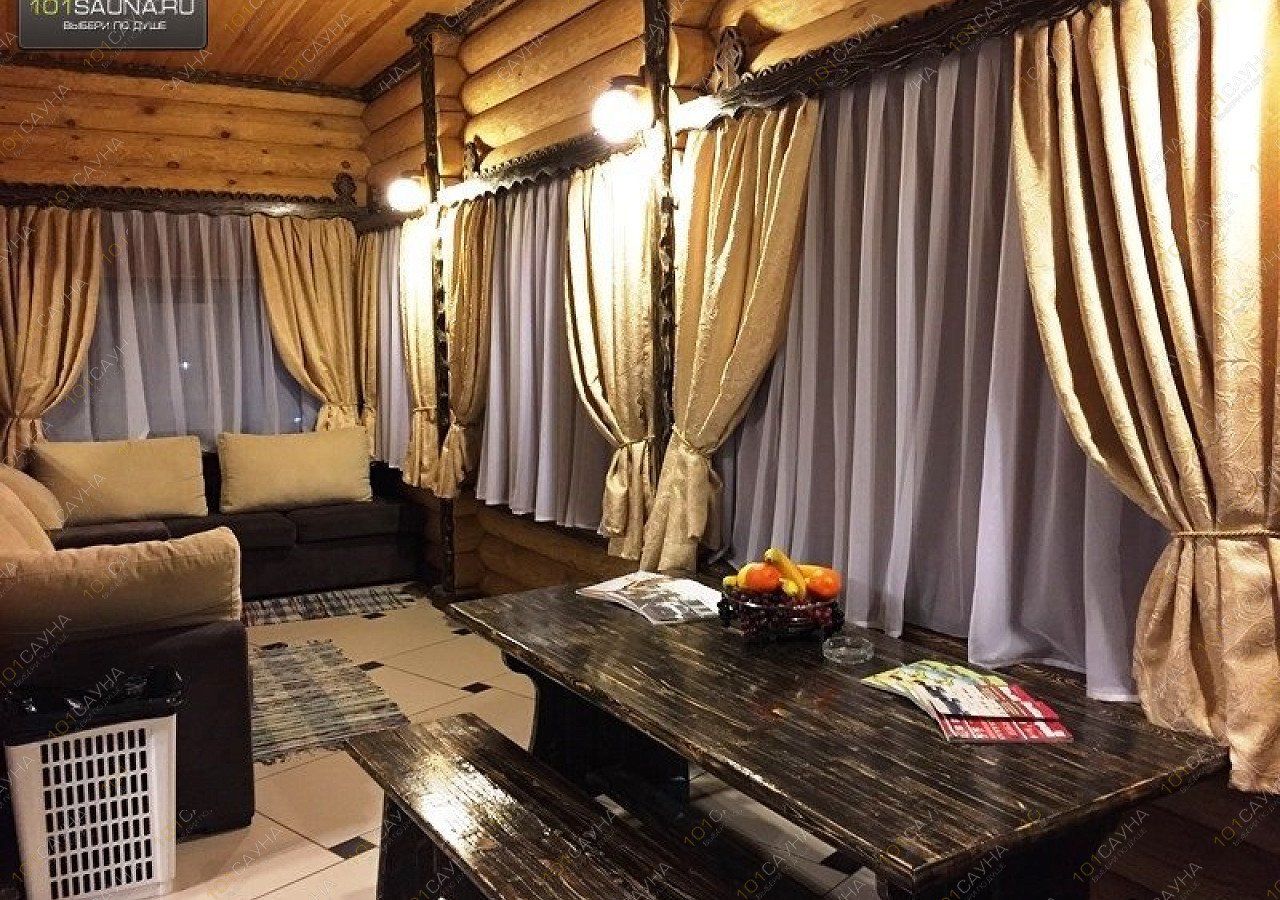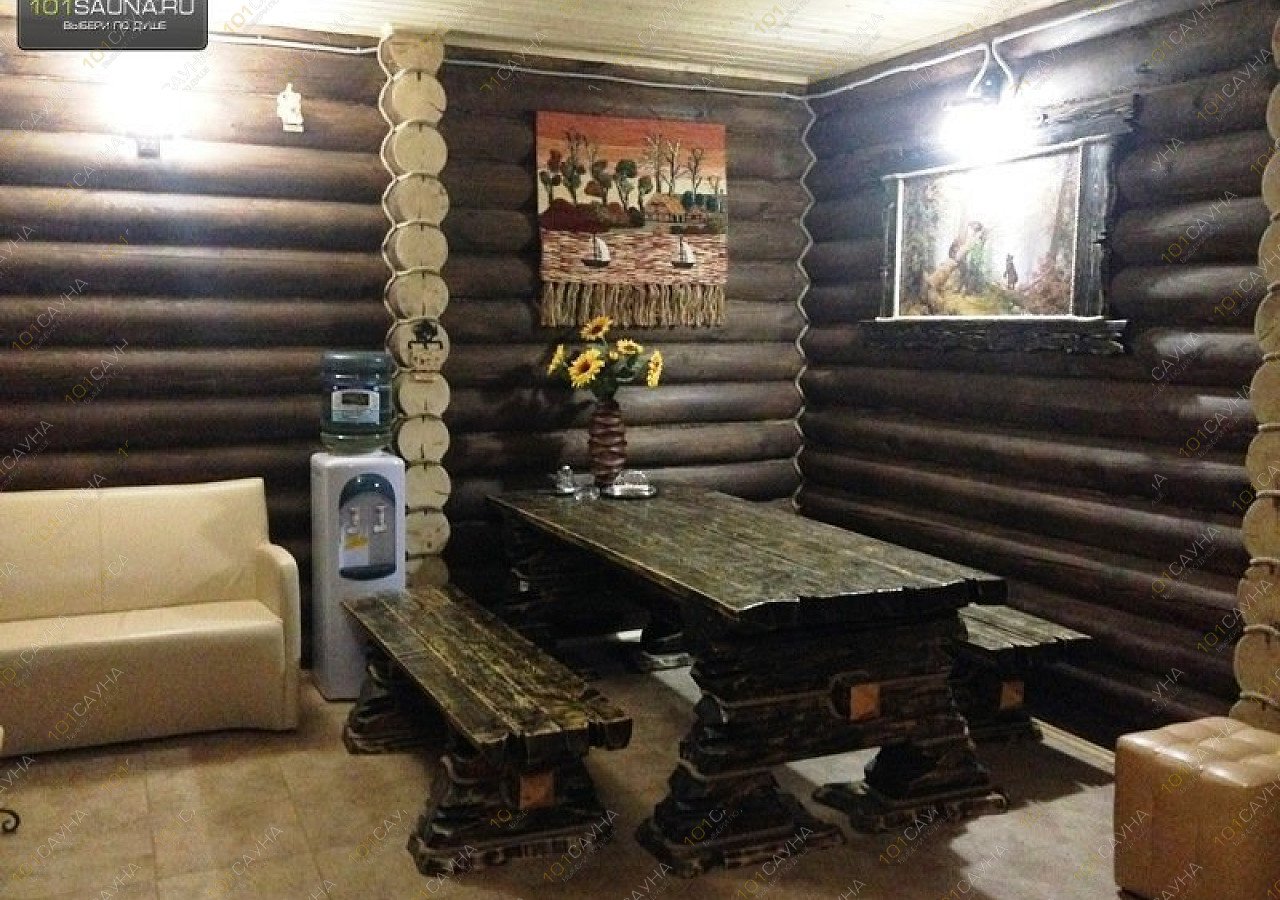 Два, отдельно стоящих деревянных дома, большой (до 20 чел.) и, среднего размера (до 12 чел.). Отапливаются на дровах, с подогревом полов, парные с использованием березовых, дубовых веников. В парной большой бани есть дубовая бочка с проточной ледяной водой, наилучший эффект после распаривания, сразу же, не выходя из парной ополоснуть себя из этой бочки. Для, менее стойких - ведро-водопад в душевых обеих бань. Также, для любителей контрастного «душа» в средней баньке есть деревянная купель с ледяной водой