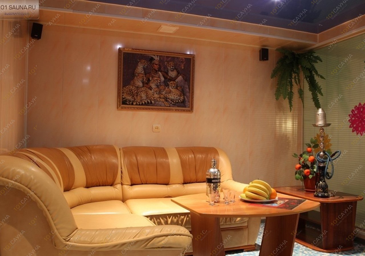 Уютный номер, выполненный в пастельно-золотой гамме, кожаная мебель, много места в комнате отдыха, жаркая финская парная, ведро после парной, джакузи, DVD – TV, караоке, бар, кальян, веники. Караоке и посуда для отдыхающих входит в стоимость номера. Четвёртый час отдыха в подарок.