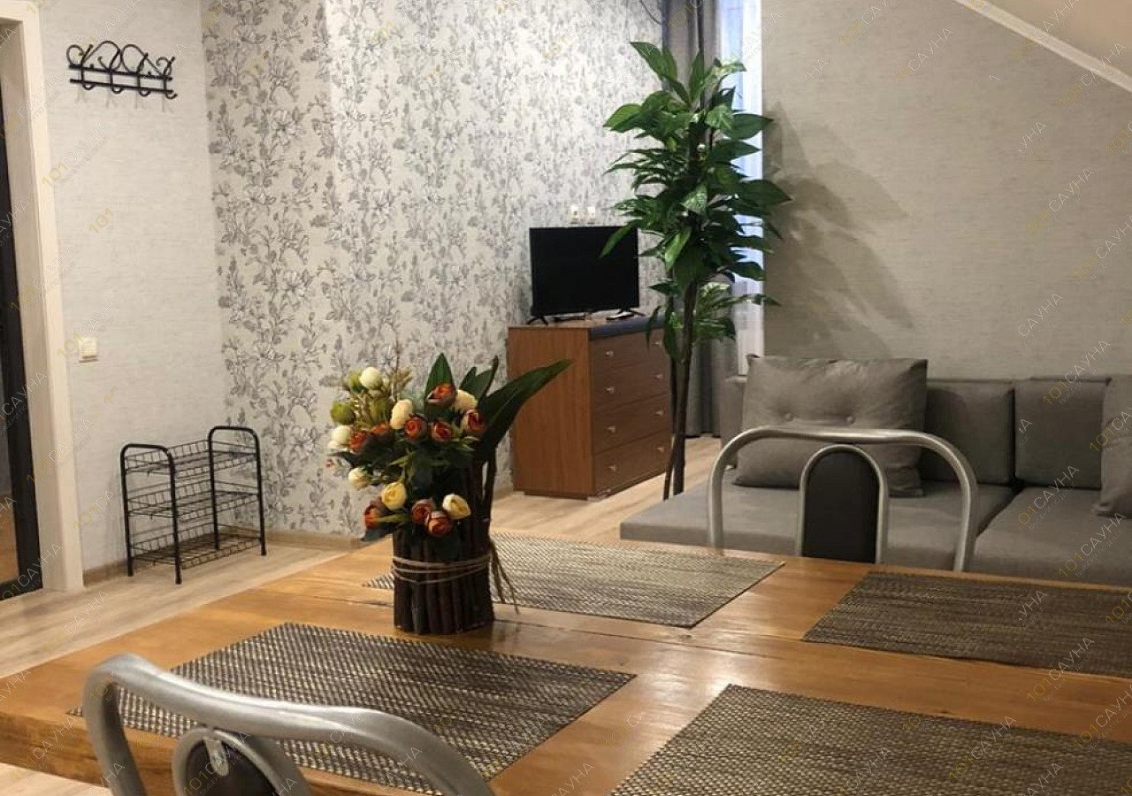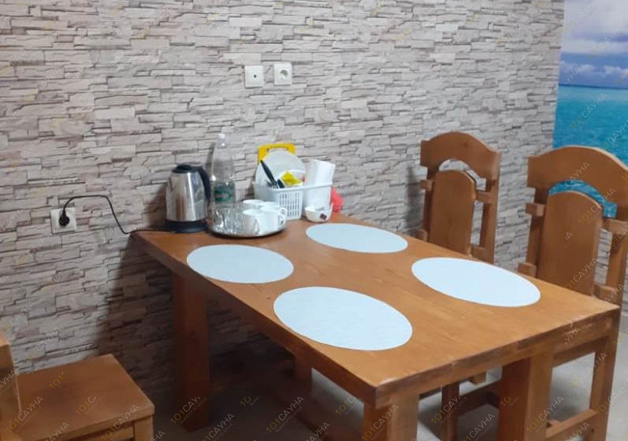 Вы можете не только заказать баню, которая расположена на первом этаже, а так же остаться в комфортабельном номере в котором имеется кухня и все прочие принадлежности для проживания и спокойного отдыха.