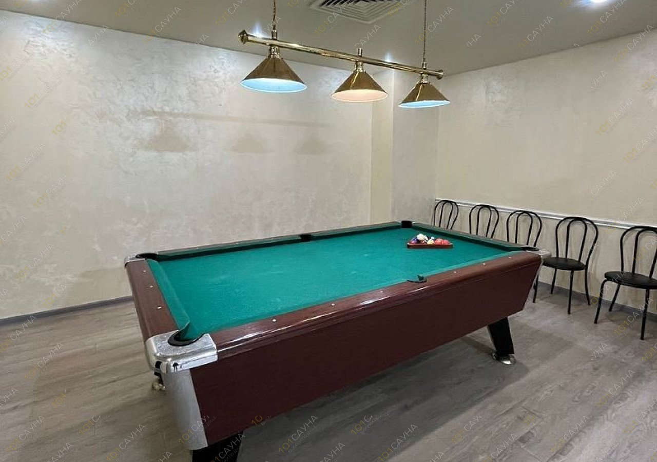 Предлагаем выбор услуг: бассейн, джакузи, массажное кресло, ТВ, бильярд, комната отдыха, банные принадлежности.