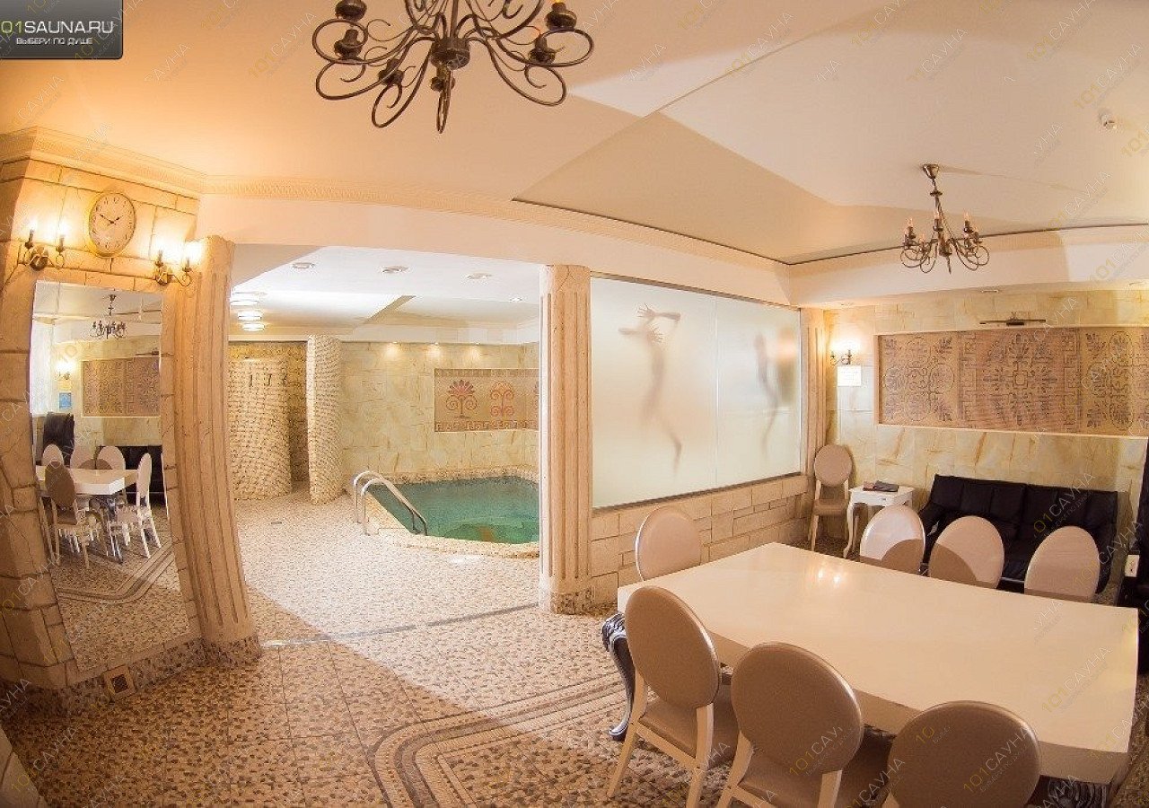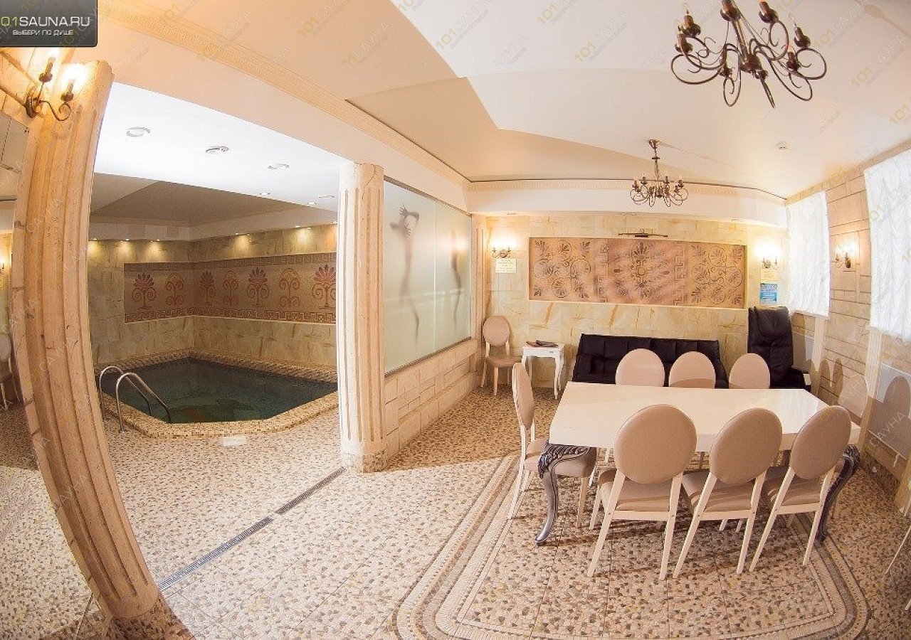 Одна из номерных вип-саун комплекса Красносельские бани, рассчитанная на 10 человек. В этом зале есть все для прекрасного отдыха: традиционная финская сауна, хамам, бассейн, душевая зона, гостиная с мини-кухней, караоке и массажным креслом. Стильная, комфортная и просторная сауна в античной стилистке не оставит вас равнодушными!