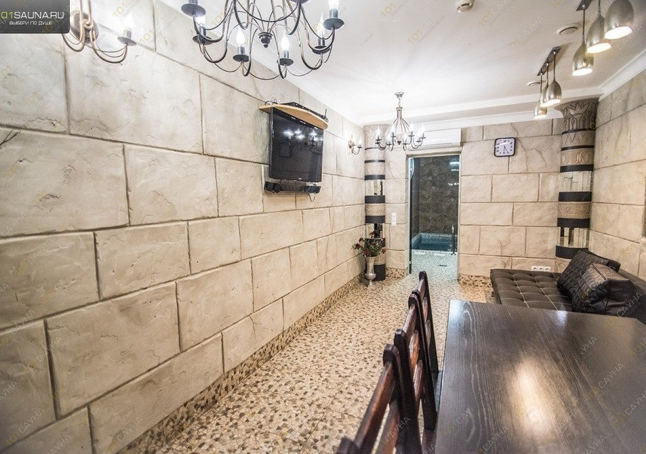 Небольшой уютный зал, рассчитанный на 6-8 человек. Его отделка в стиле эпохи фараонов включает в себя такие элементы, как монументальные колонны и настенные панно с древнеегипетскими орнаментами. В этом зале есть все для незабываемого времяпрепровождения: большая финская парная, душевая, бассейн и комната отдыха с телевизором и караоке.