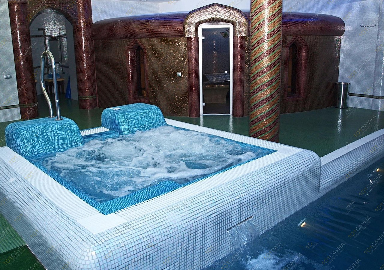 Гидромассажный бассейн - оснащенный гидромассажными форсунками и водопадом. Гидромассаж приятно промассажирует Ваше тело, и Вы получите заряд бодрости на весь день. Такой массаж стимулирует и придает тонус тканям и мышцам, вызывает расширение кровеносных сосудов, что способствует активации процесса кровообращения, обмена веществ, снижению веса и позитивно влияет на психологическое здоровье.