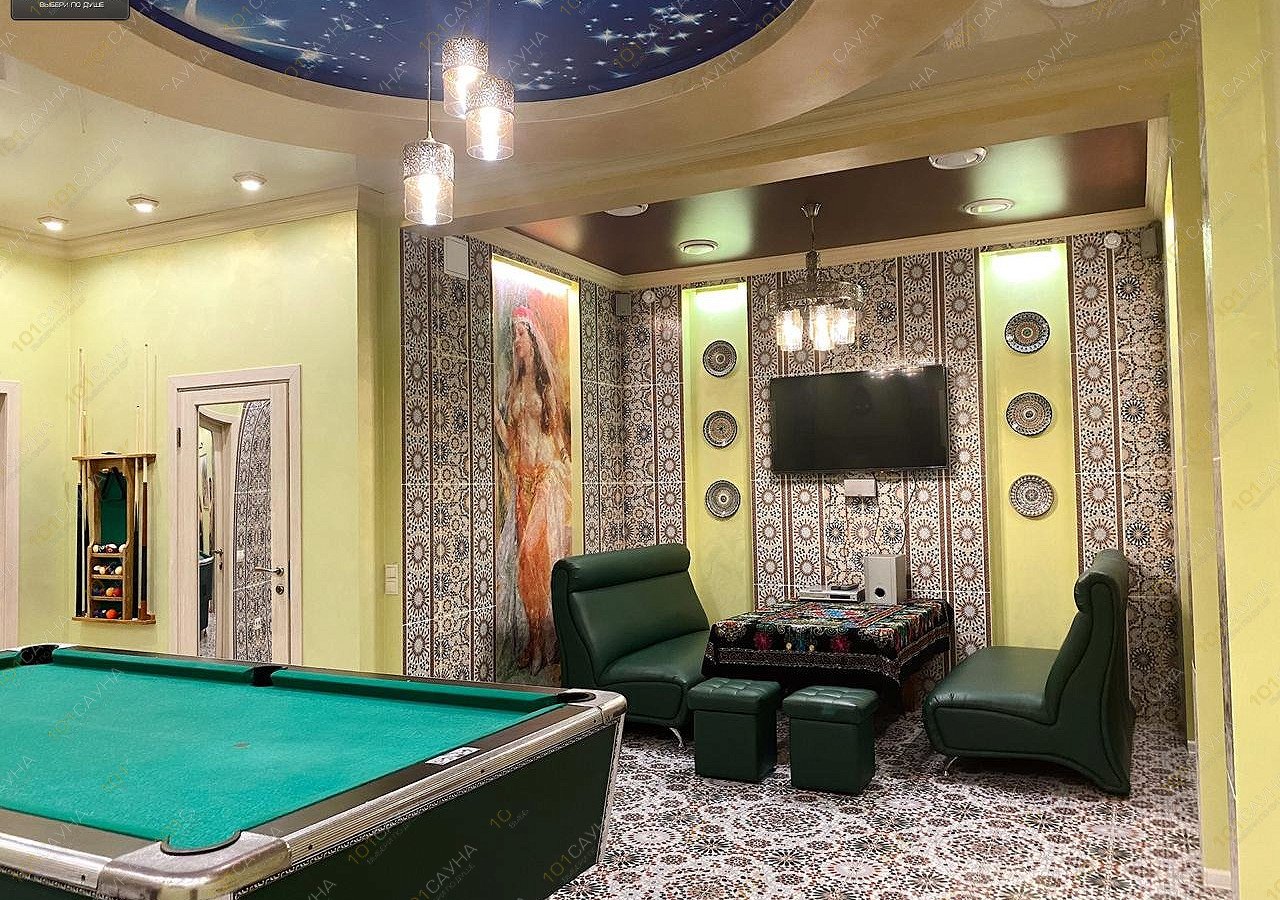 Отличный,настоящий хамам,почувствовал себя султаном!Сауна новая,обслуживание на высоком уровне,дорожат клиентами.Бесплатно караоке ,американский билья...