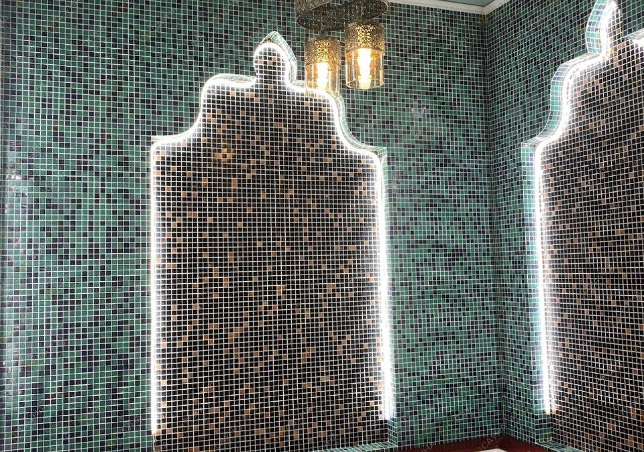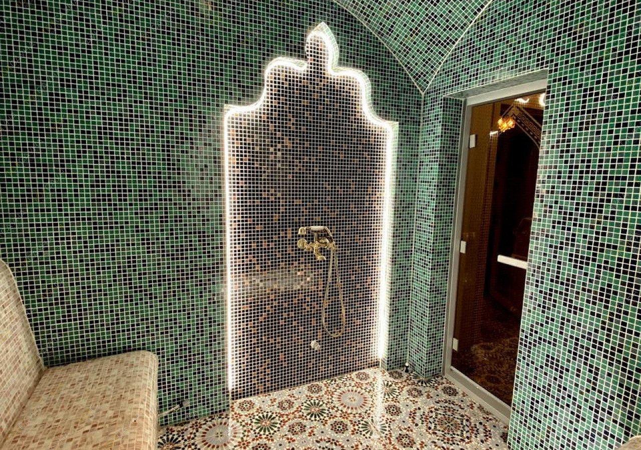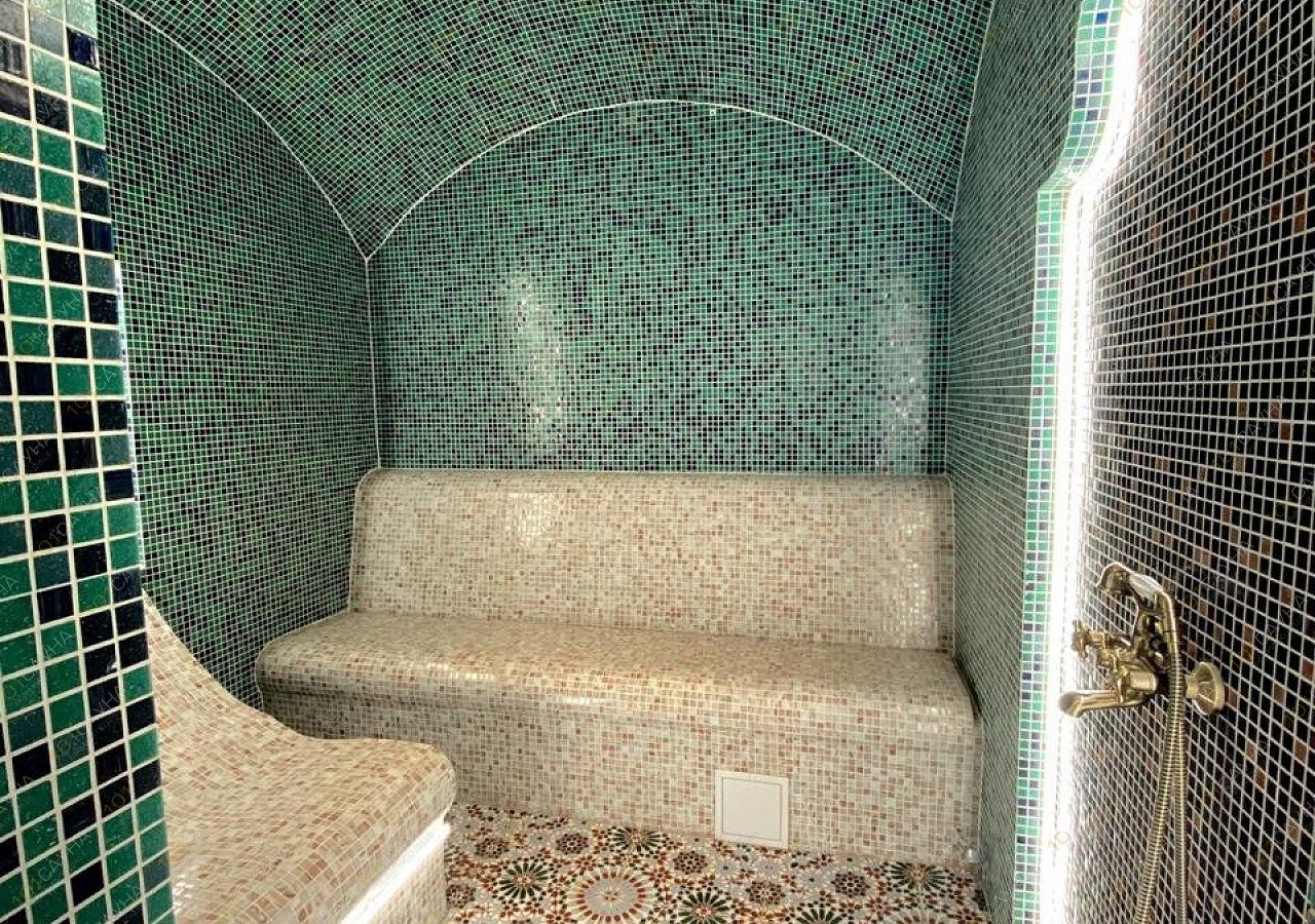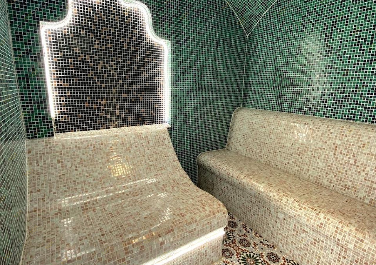 Турецкая парная со 100% влажностью воздуха и мягким ароматным паром, температура 55 градусов.