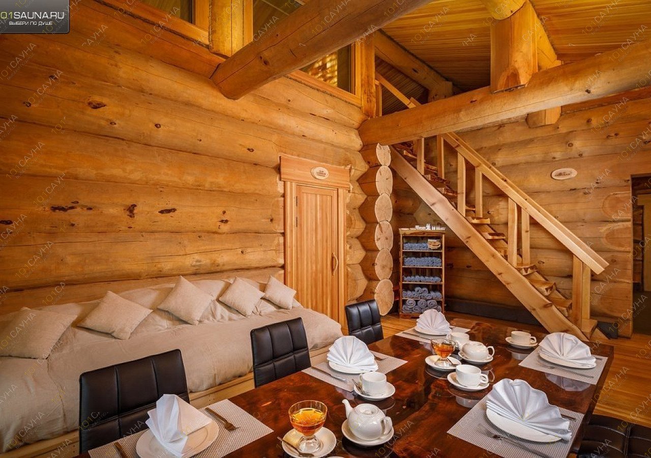 Комплекс выполнен из натурального сруба деревьев, привезённых из Горного Алтая, а внутреннее пространство помимо парной оборудовано сеновалом, снегогенератором и купелью и массажной комнатой.