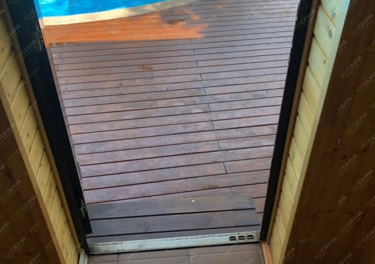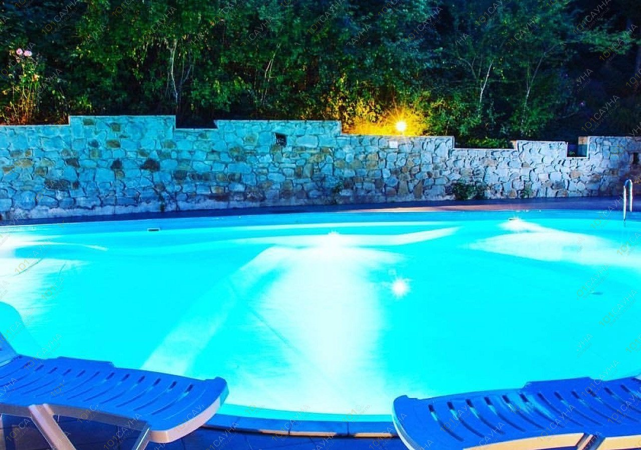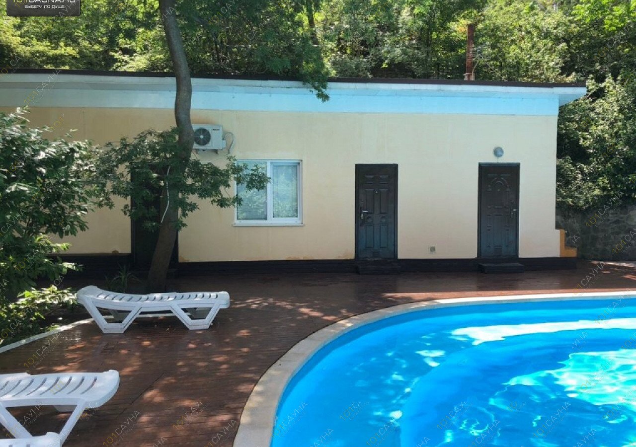 Возле сауны расположен открытый бассейн.