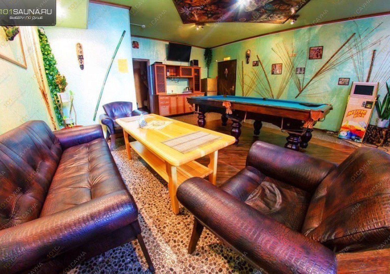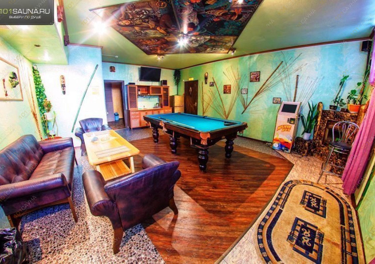 Предлагаем выбор услуг: бассейн, можно париться с веником, выбор веников, зона отдыха, ТВ, музыкальный аппарат, русский бильярд, комната отдыха.