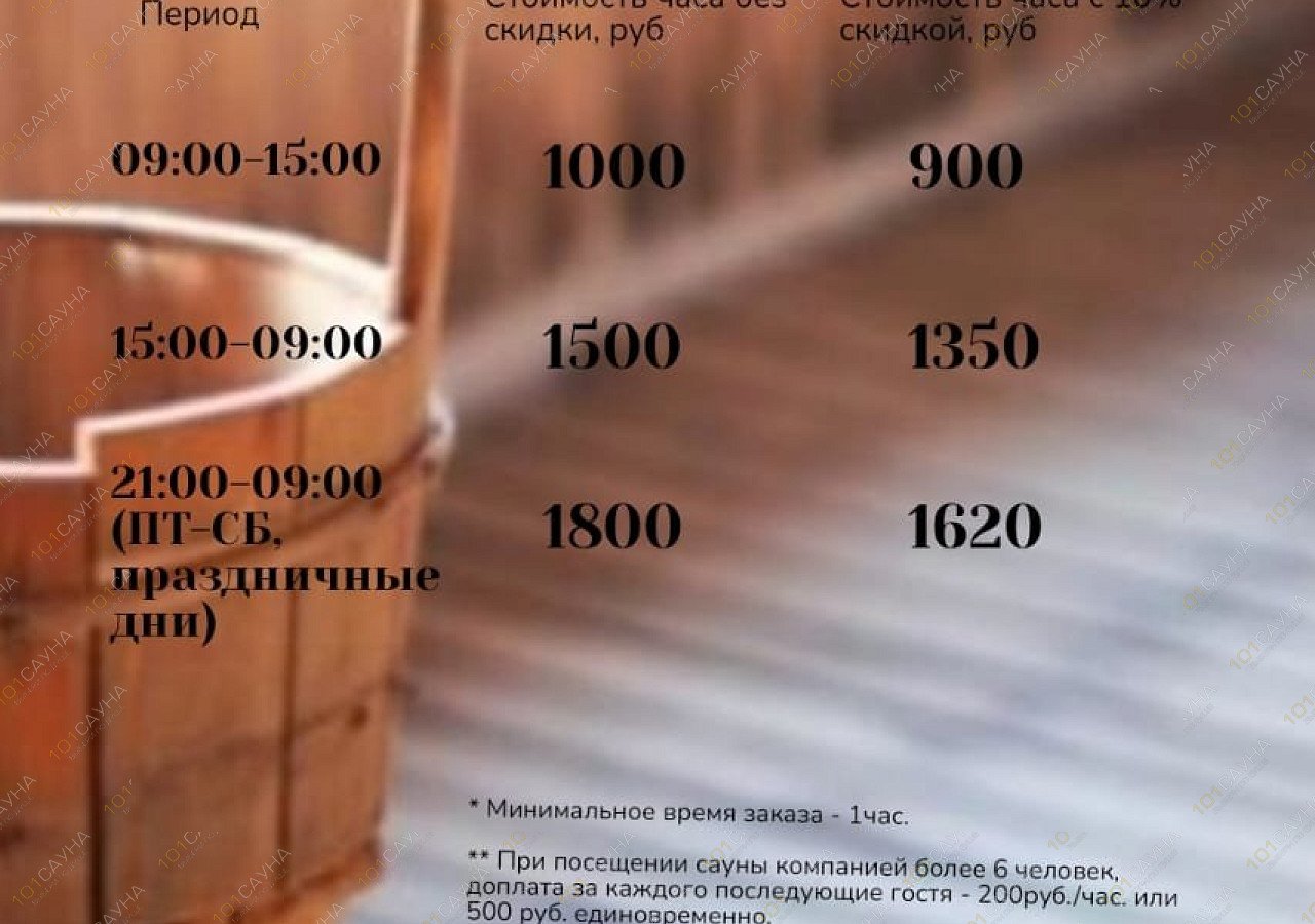 с 09.00 до 15.00 - 1000 р/час за всю сауну