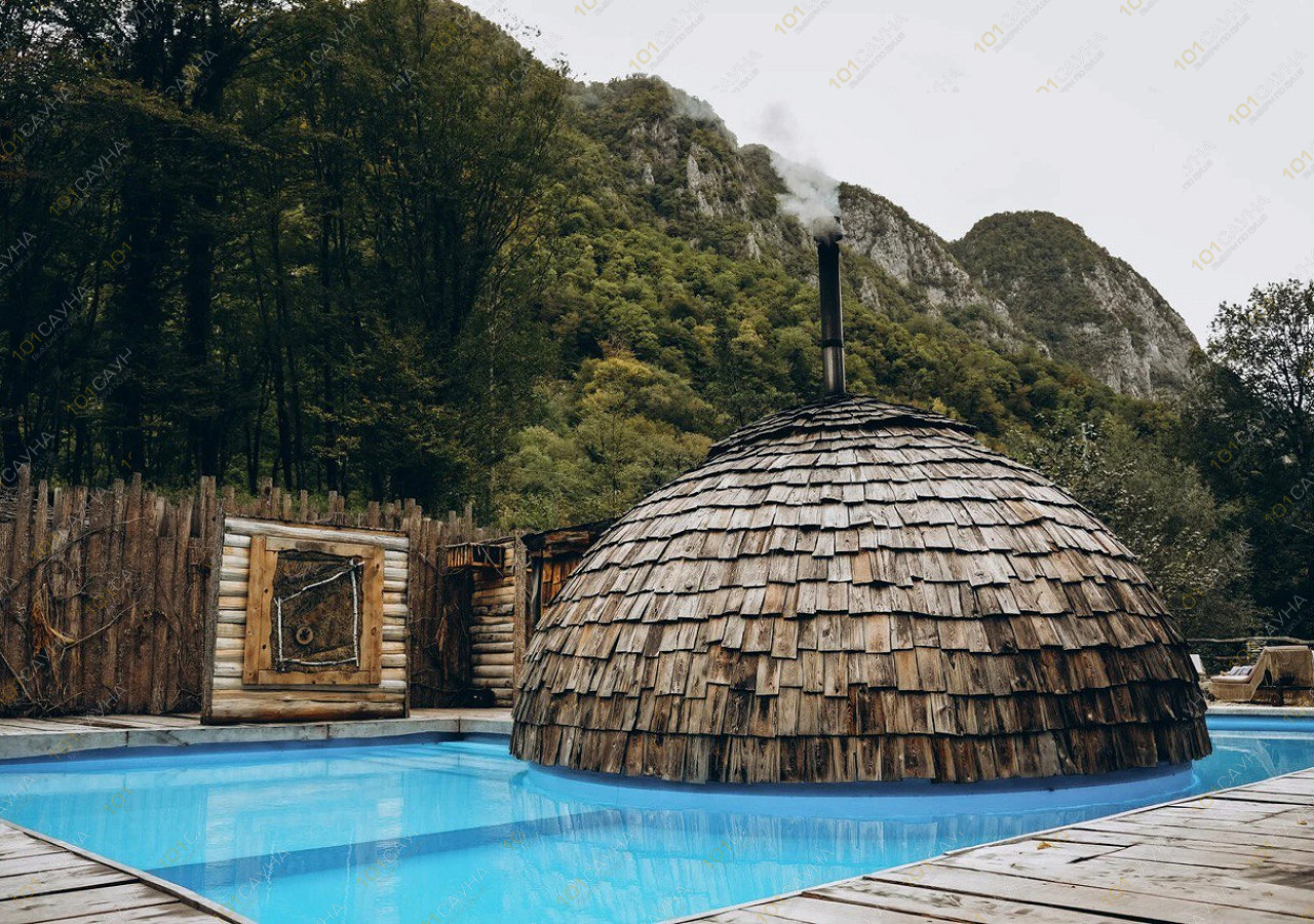 Благодать с бассейном на улице и Живицу с глубокой голубой купелью в парной.