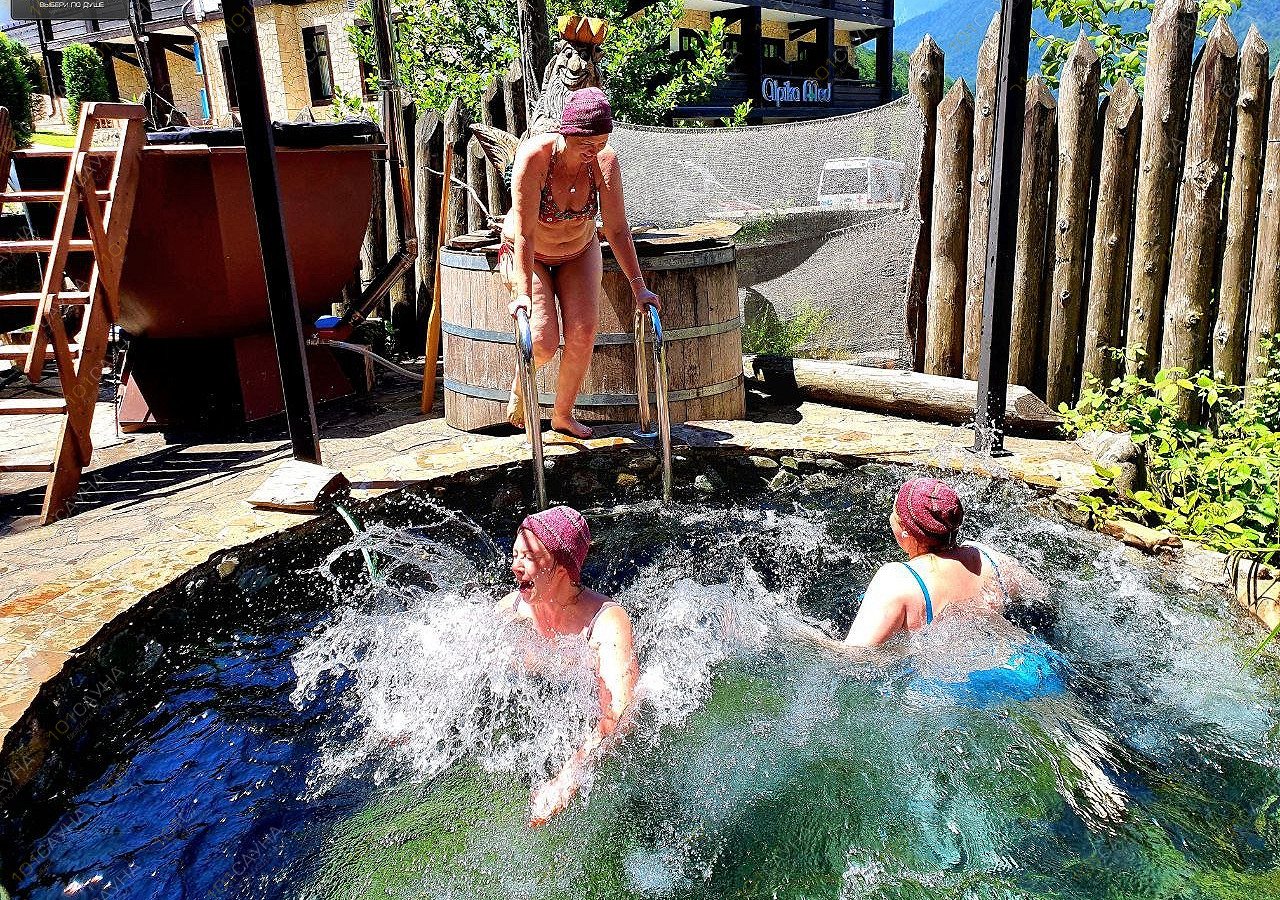 Предлагаем выбор услуг: Холодные родниковые купели, Горная река, Виды гор, Мягкий пар, Живой огонь, Душевный чай, Обученные мастера, Массажный кабинет, Школа банщиков и массажа, Консультации банных экспертов по здоровью и банным технологиям..