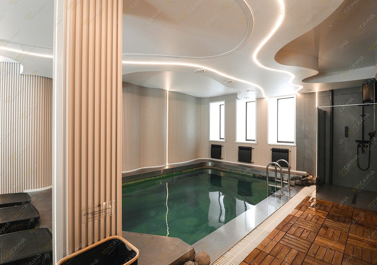 Закрытый подогреваемый бассейн. Размером 5х3 метров. Температура воды 30 °С.