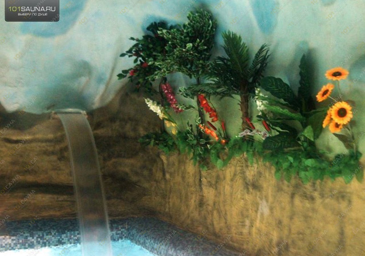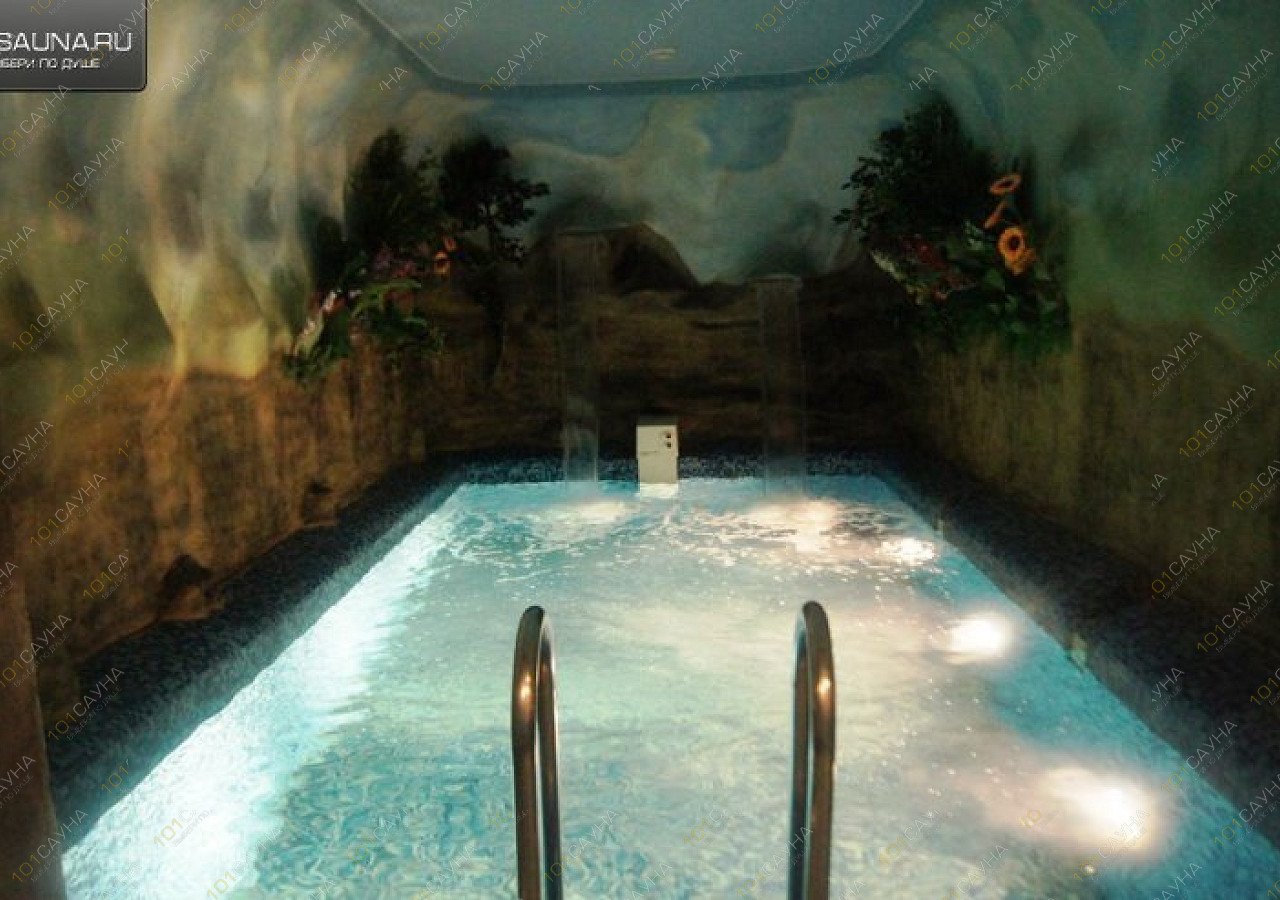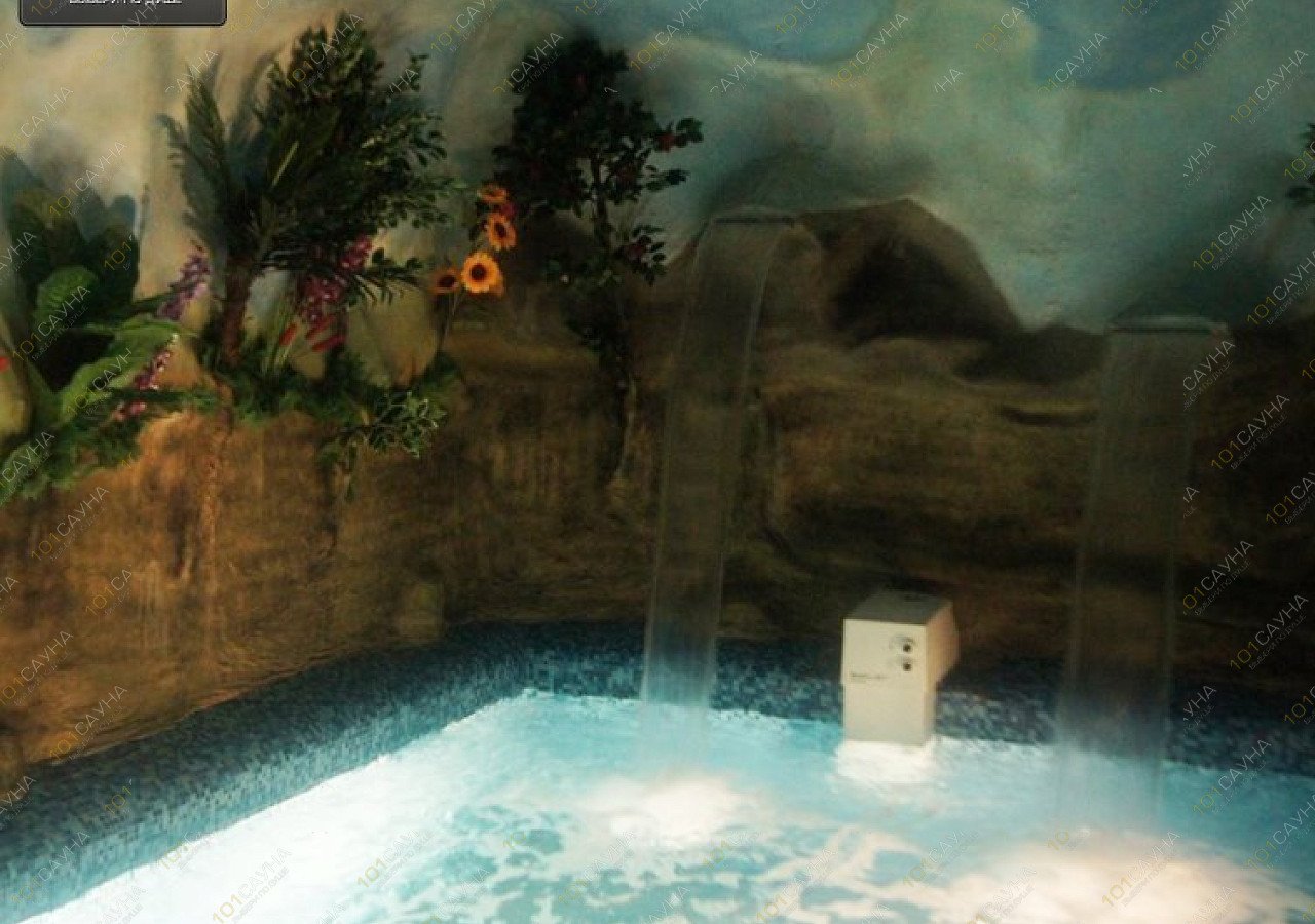 Сауна с бассейном 4х8, с двумя экзотическими водопадами и противотоком (искусственное течение);