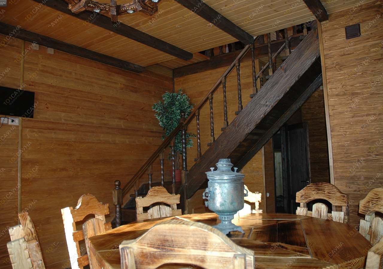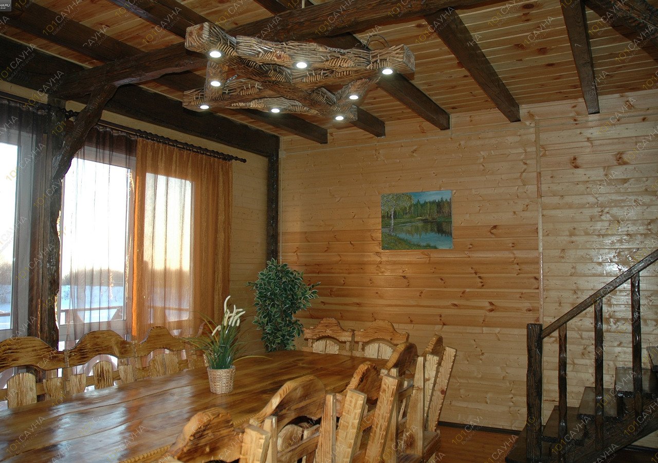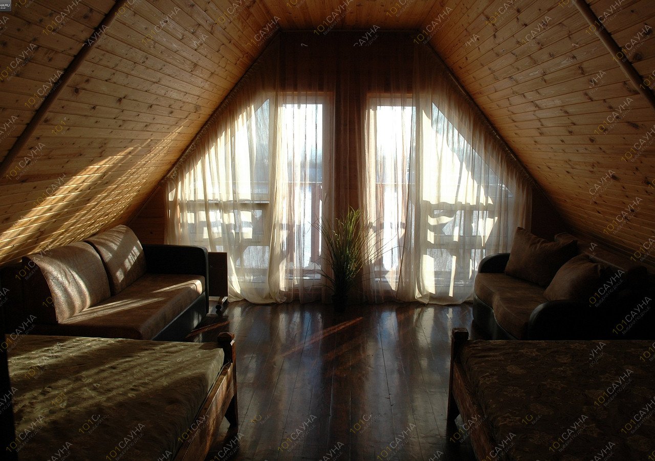 Бани расположены в цокольных этажах комфортабельных коттеджей на берегу озера. Выходы из бань на берег озера с обустроенным спуском в воду, действующим круглогодично. На первых этажах коттеджей расположены банкетные залы с кухней. На вторых этажах спальные комнаты. В домах есть ТV, муз.центр, холодильник, эл.плита, эл.чайник, СВЧ-печь